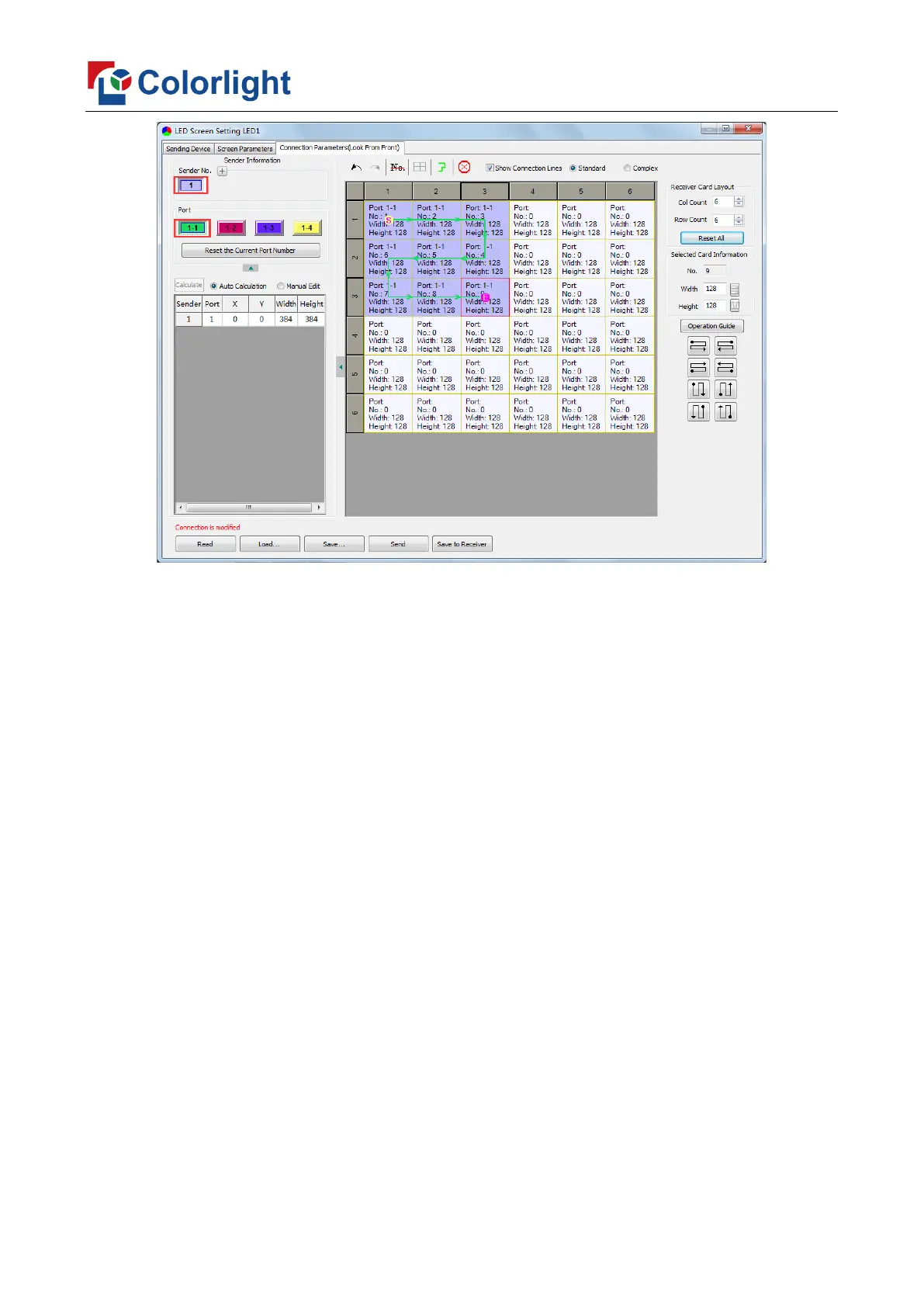 Click the receiver (receiving card) one by one, according to actual connecting line, until