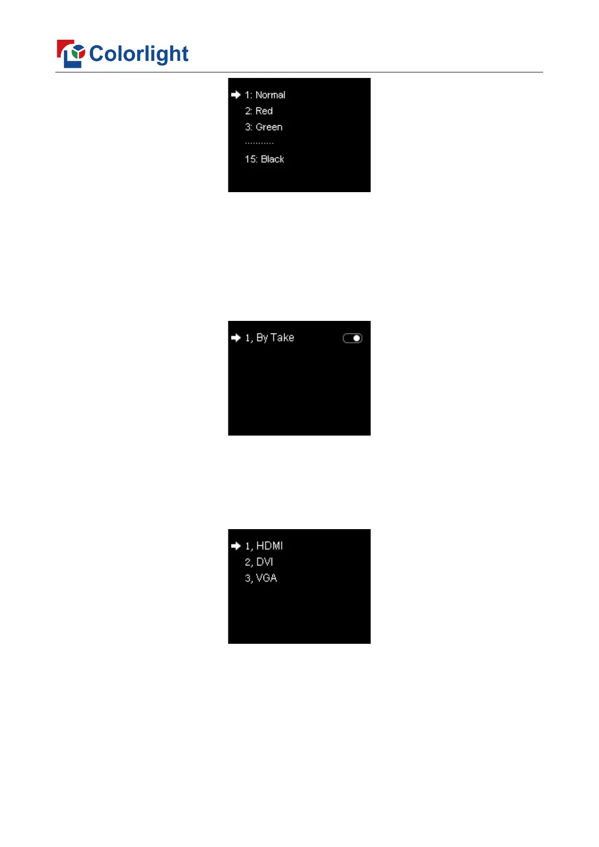 directly press the selection key of video source to switch the playing video; if “By Take” has