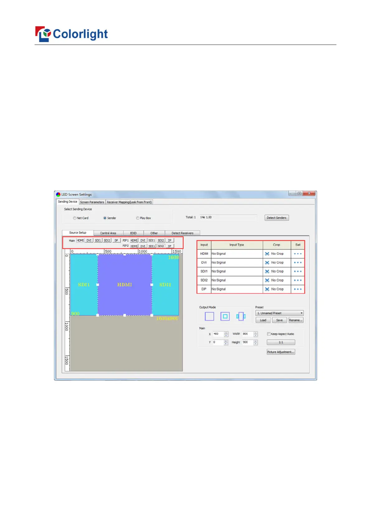 includes 5 parts: Source Setup, Control Area, EDID, Other, Detect Receivers.