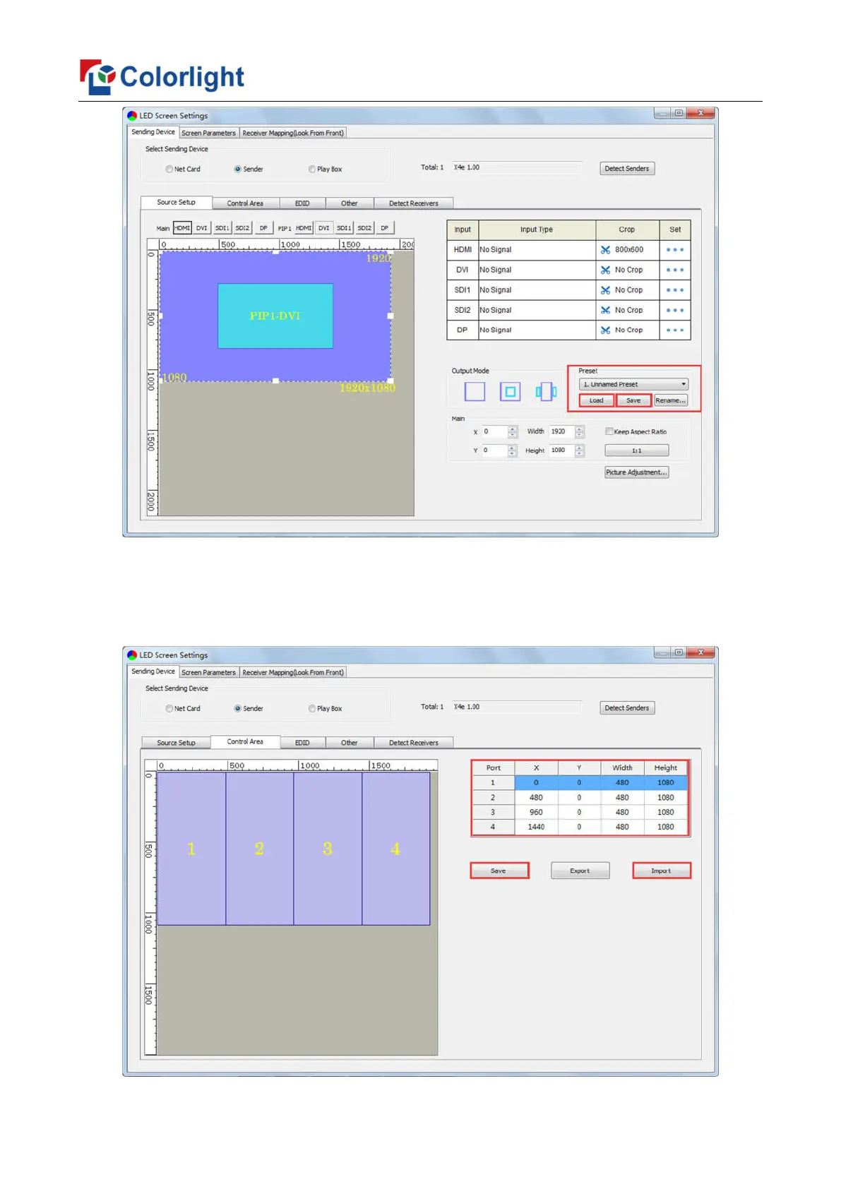 set up the control area of each net port respectively (X, Y, Width, Height), click [Save].