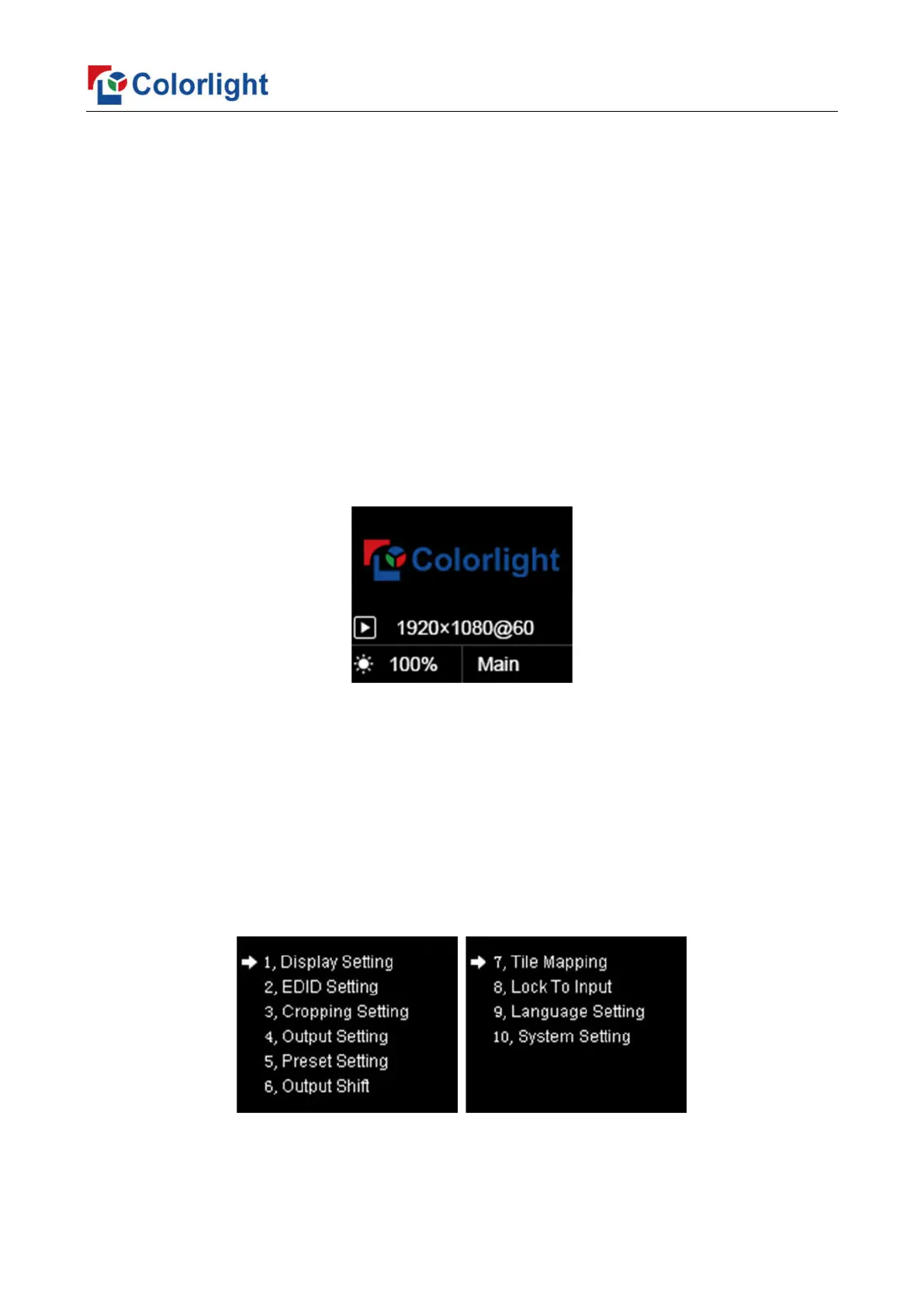 Preset Setting, Output Shift, Tile Mapping, Lock To Input, Language Setting, System