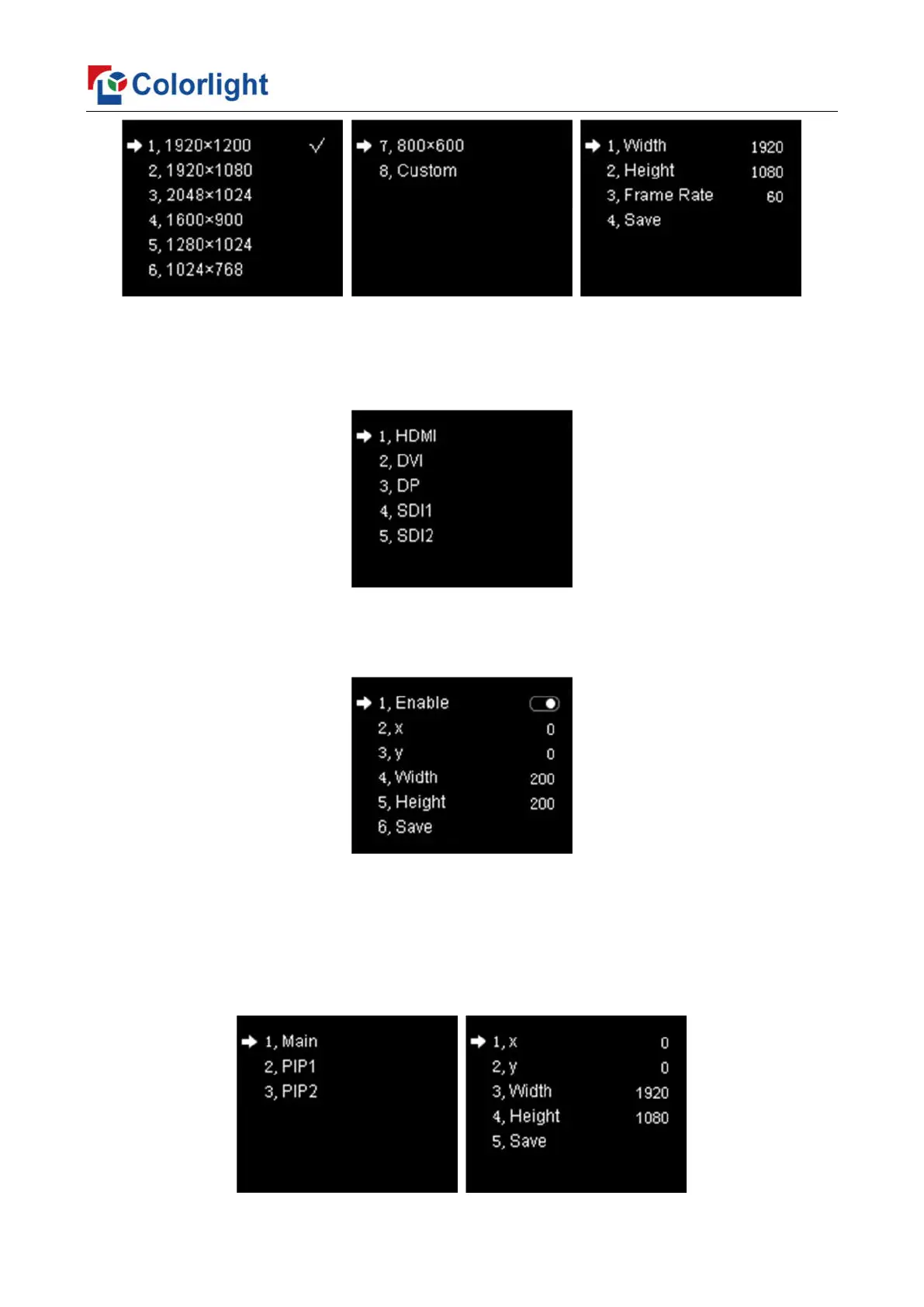 Enter the cropping interface of “HDMI” or “DVI” or “DP” or “SDI1” or “SDI2”, press the