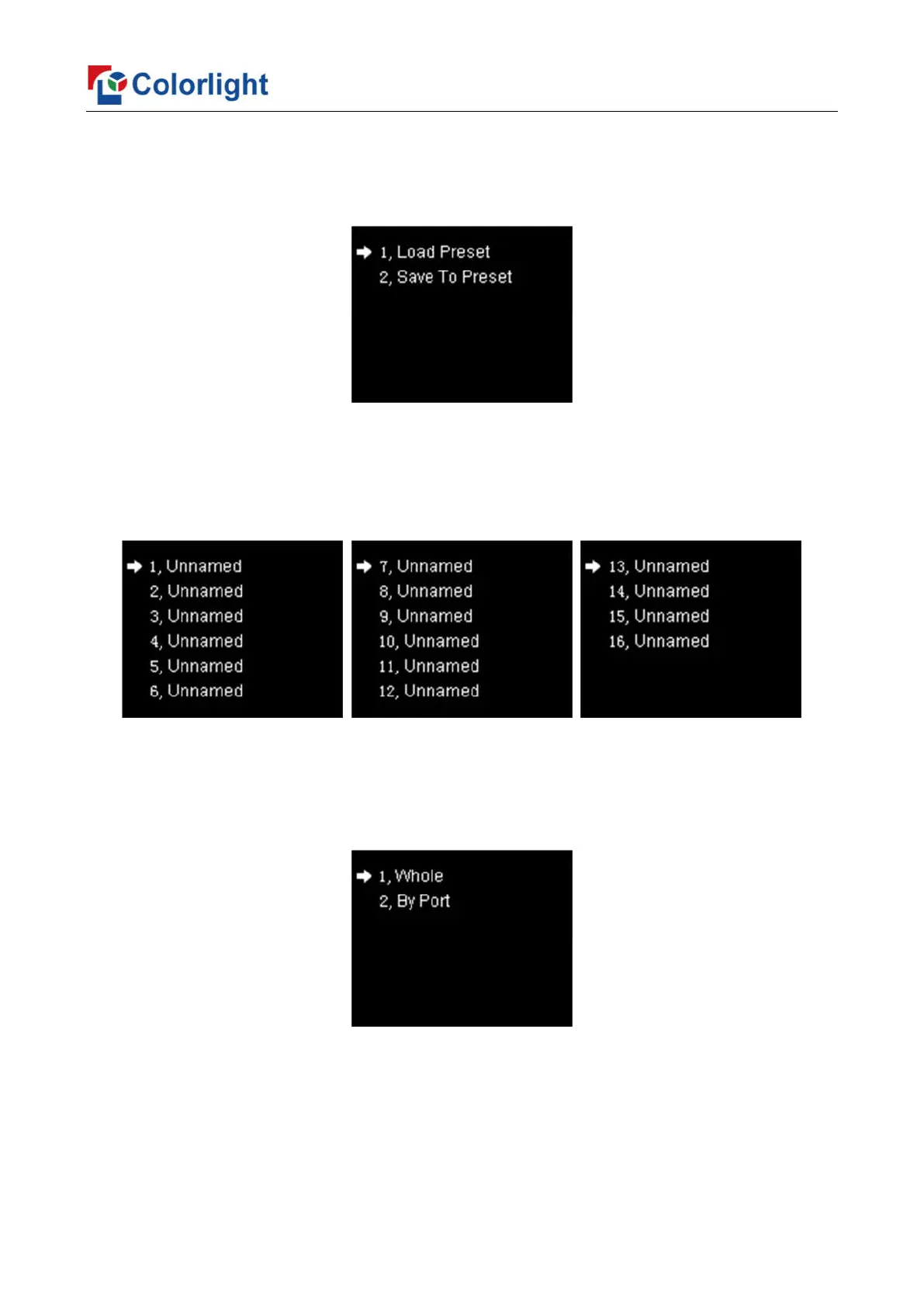 picture adjustment), users can also directly load the saved preset parameter to display the