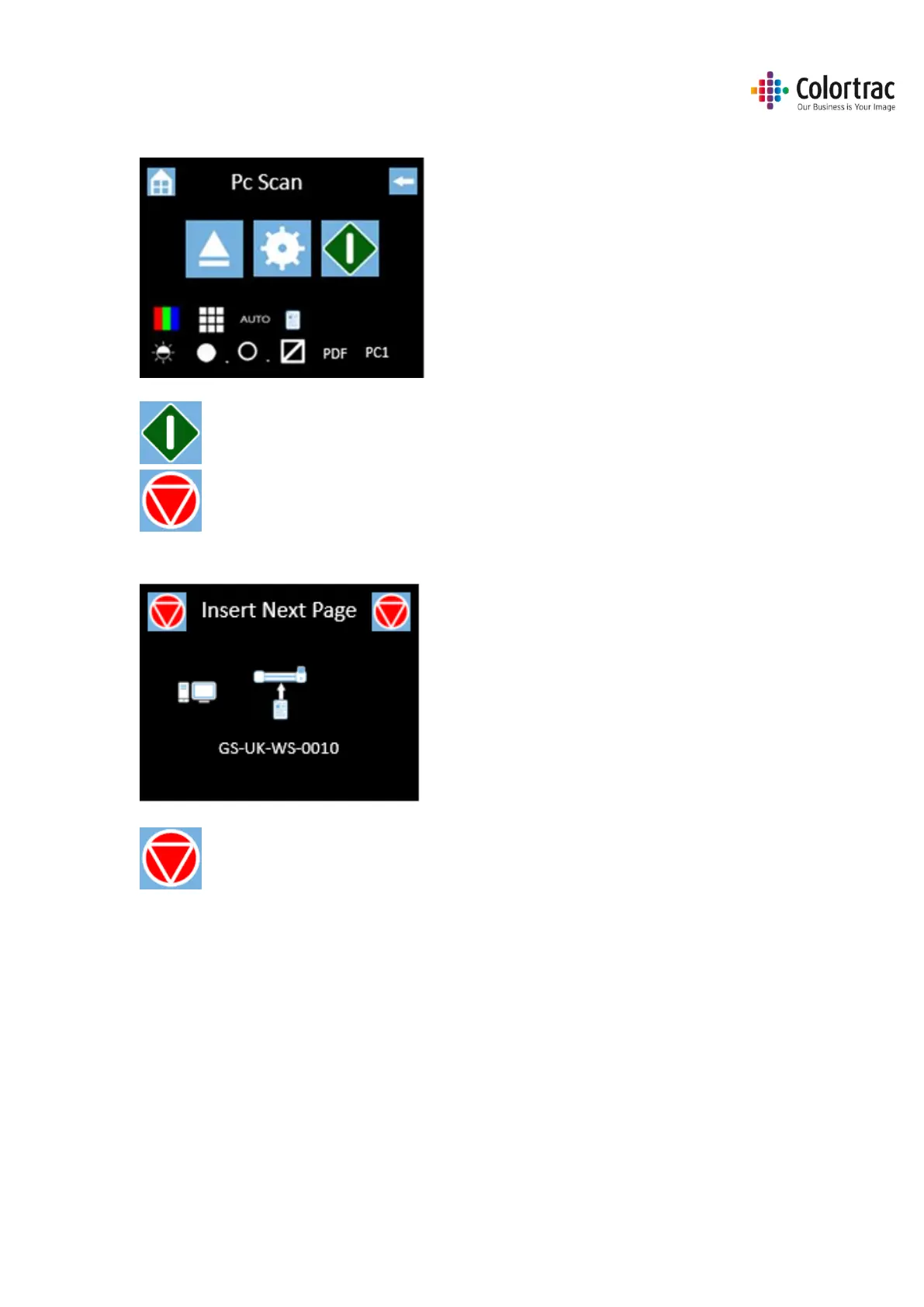 Cancel: Pressing the Red Stop button will stop the scanner immediately.
