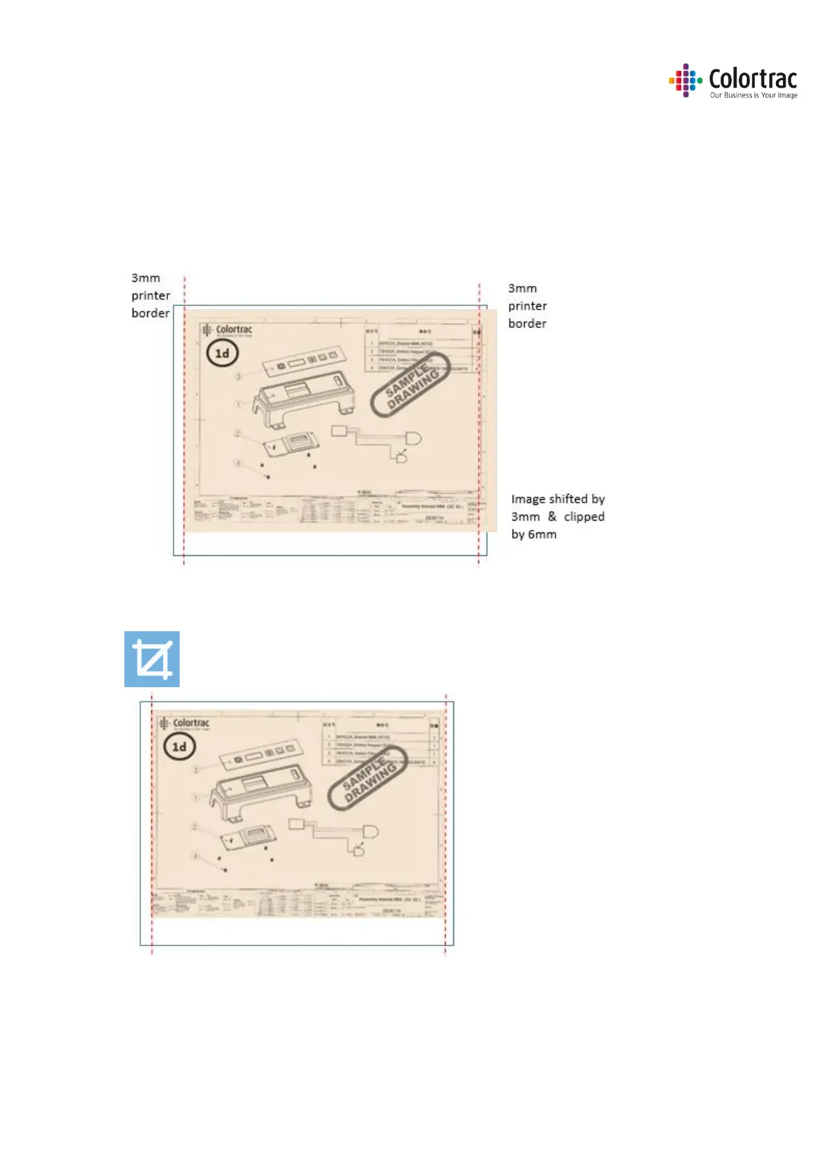 • Enabling the Crop feature means the original image is printed correctly by cropping a 3mm