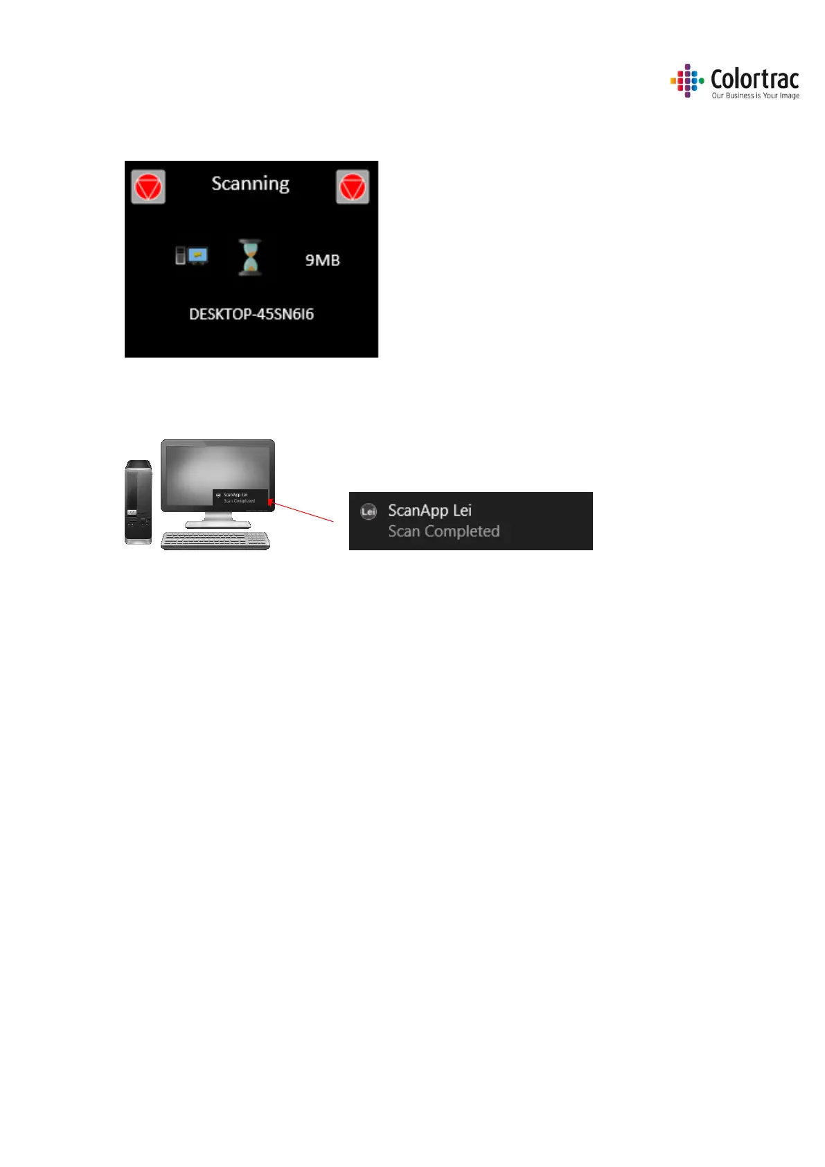 On the PC, the ScanApp Lei will show Scan Completed. The scan file will be saved in the Scan