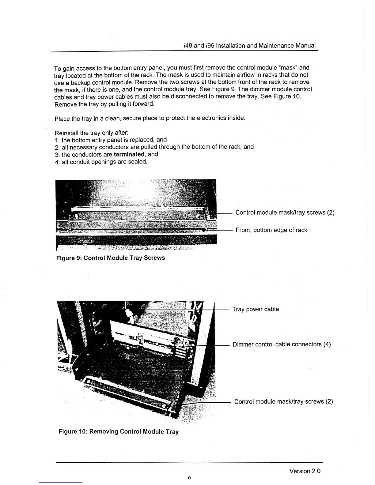 Colortran I 48 - Control Module Tray Screws; Removing Control Module Tray