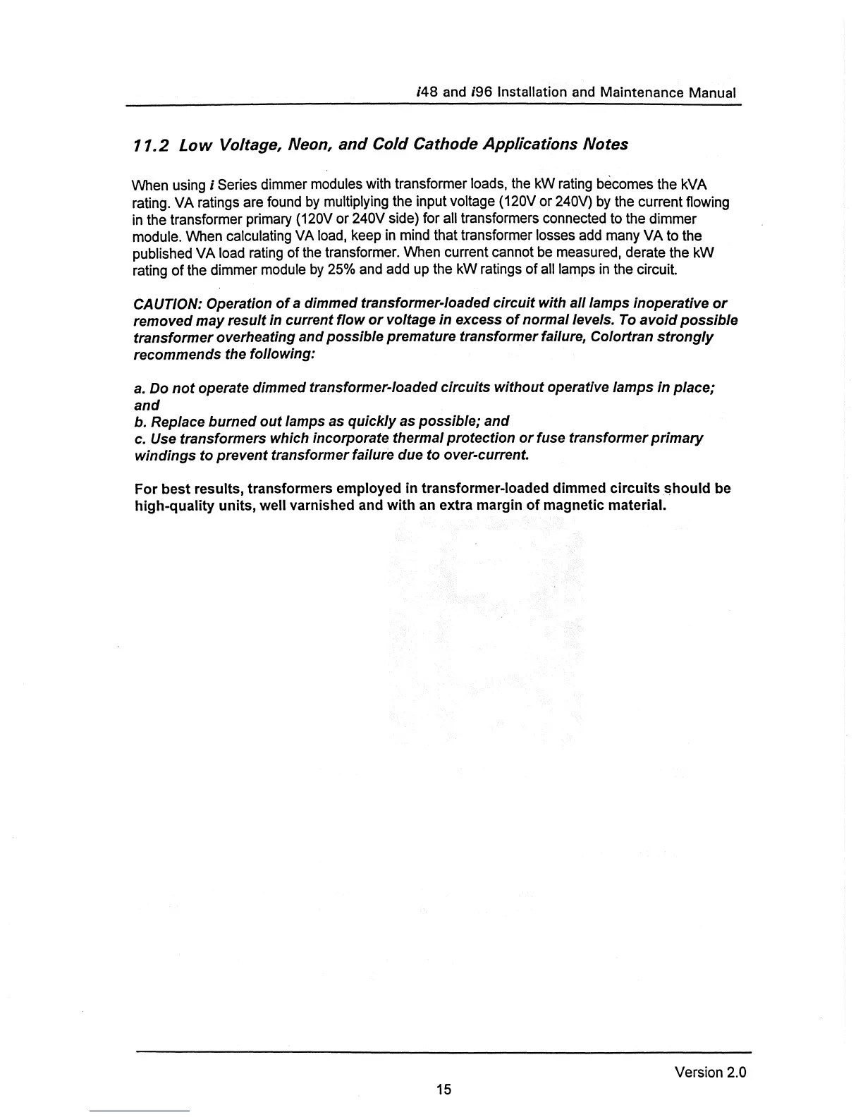 Colortran I 48 - Low Voltage, Neon and Cold Cathode Applications Notes