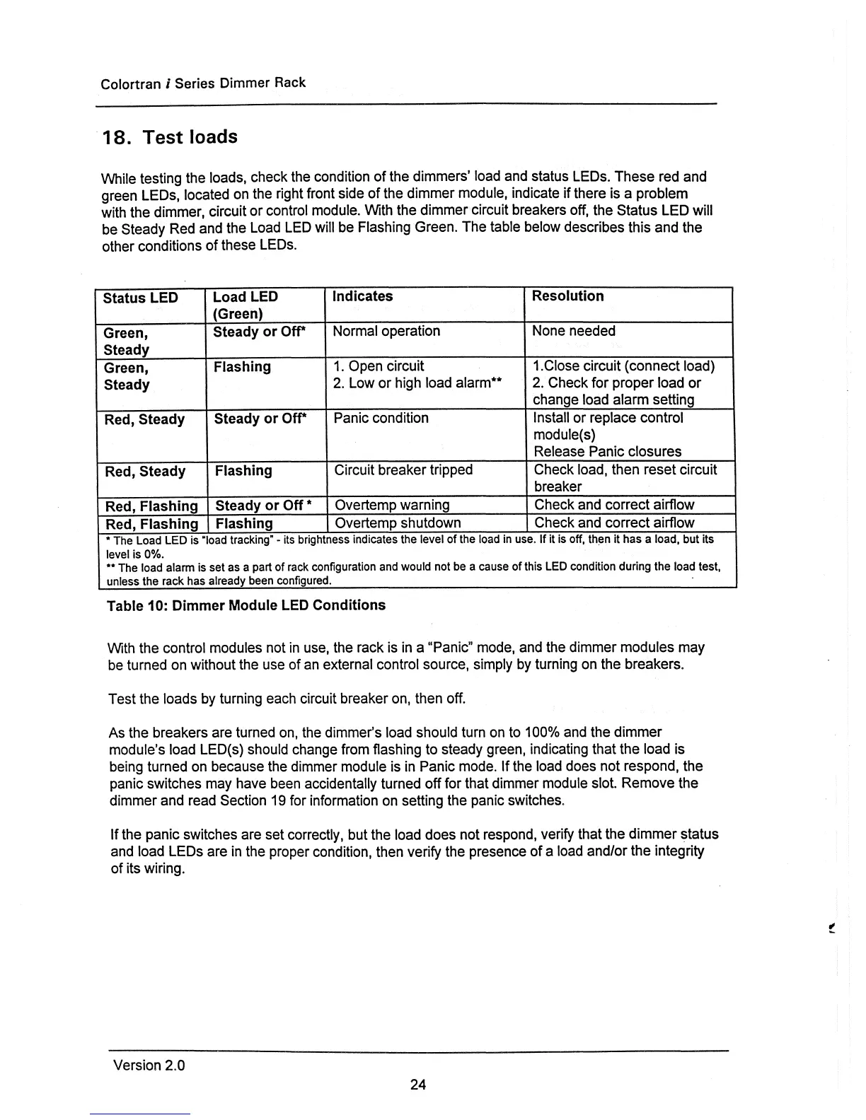 Colortran I 48 - Test Loads; Dimmer Module LED Conditions