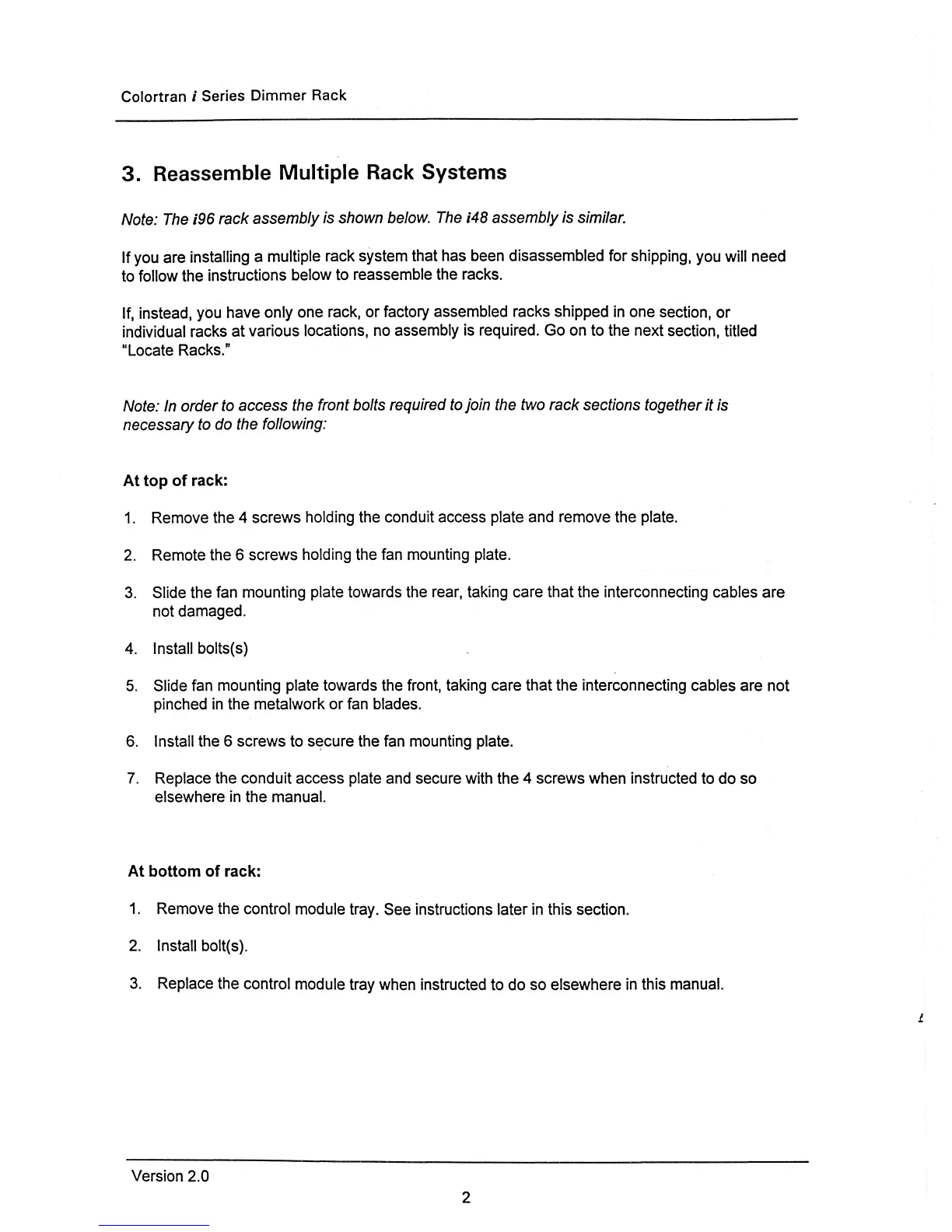 Colortran I 48 - Reassemble Multiple Rack Systems; At Top of Rack; At Bottom of Rack