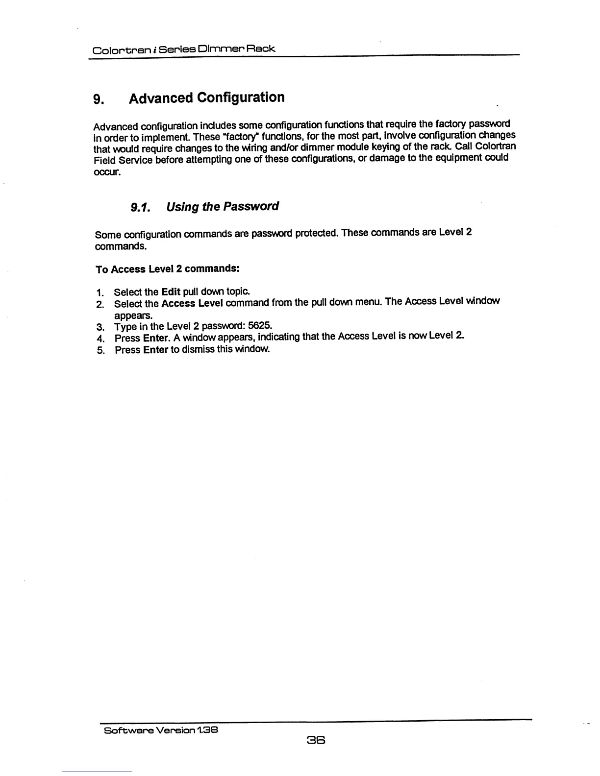 Colortran i 96 - 9. Advanced Configuration; 9.1. Using the Password
