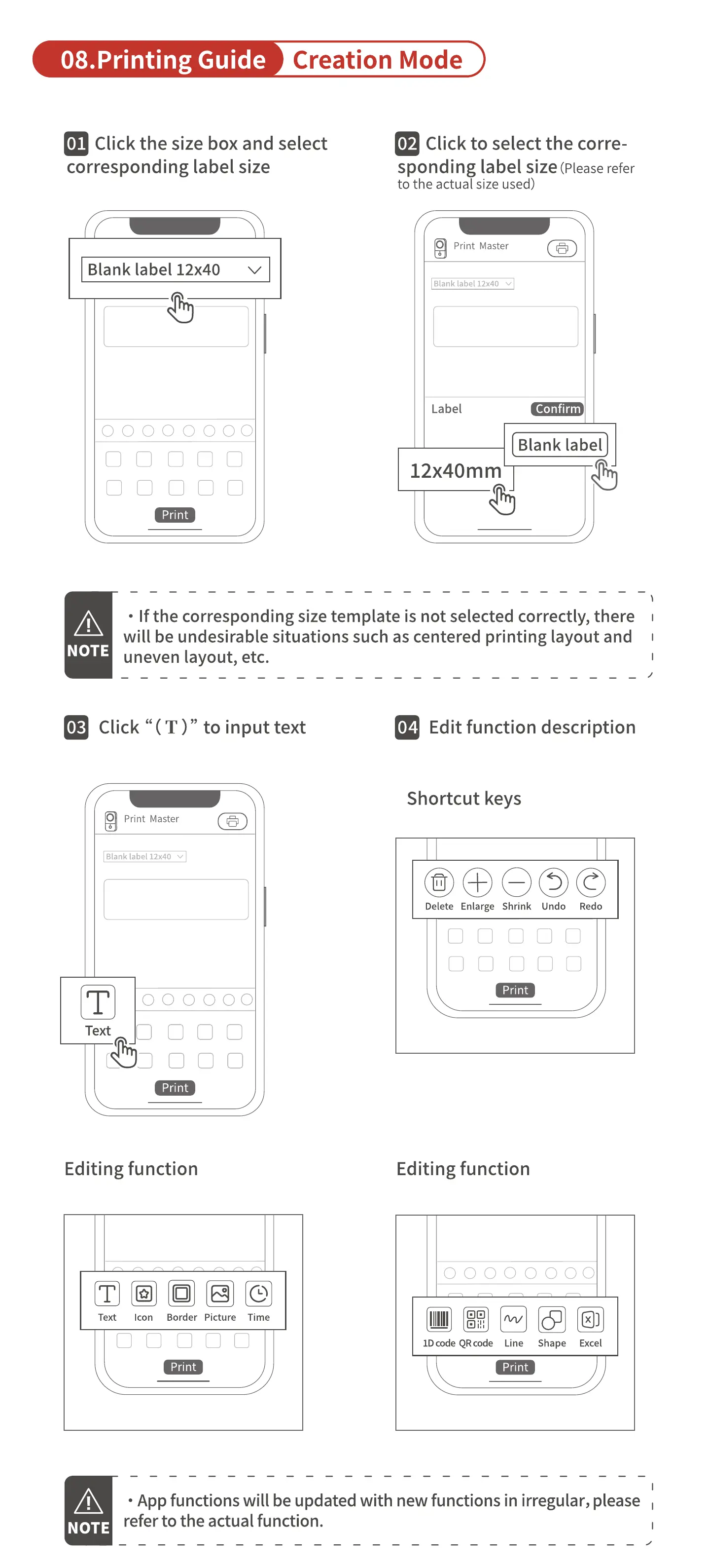 Whether the matching label size and pattern have been selected in the App. Please