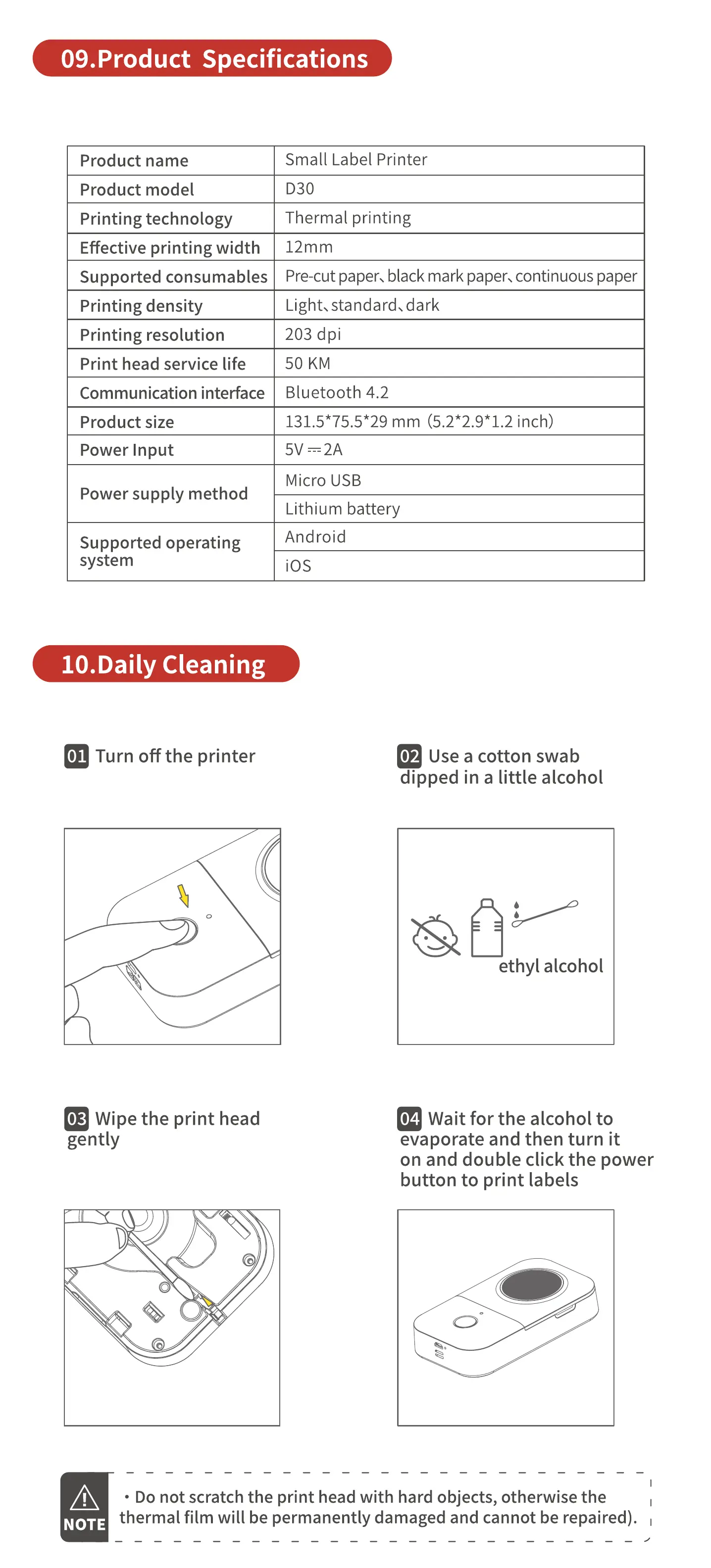 with a little alcohol to gently wipe the dirt on the print head. Do not turn on the