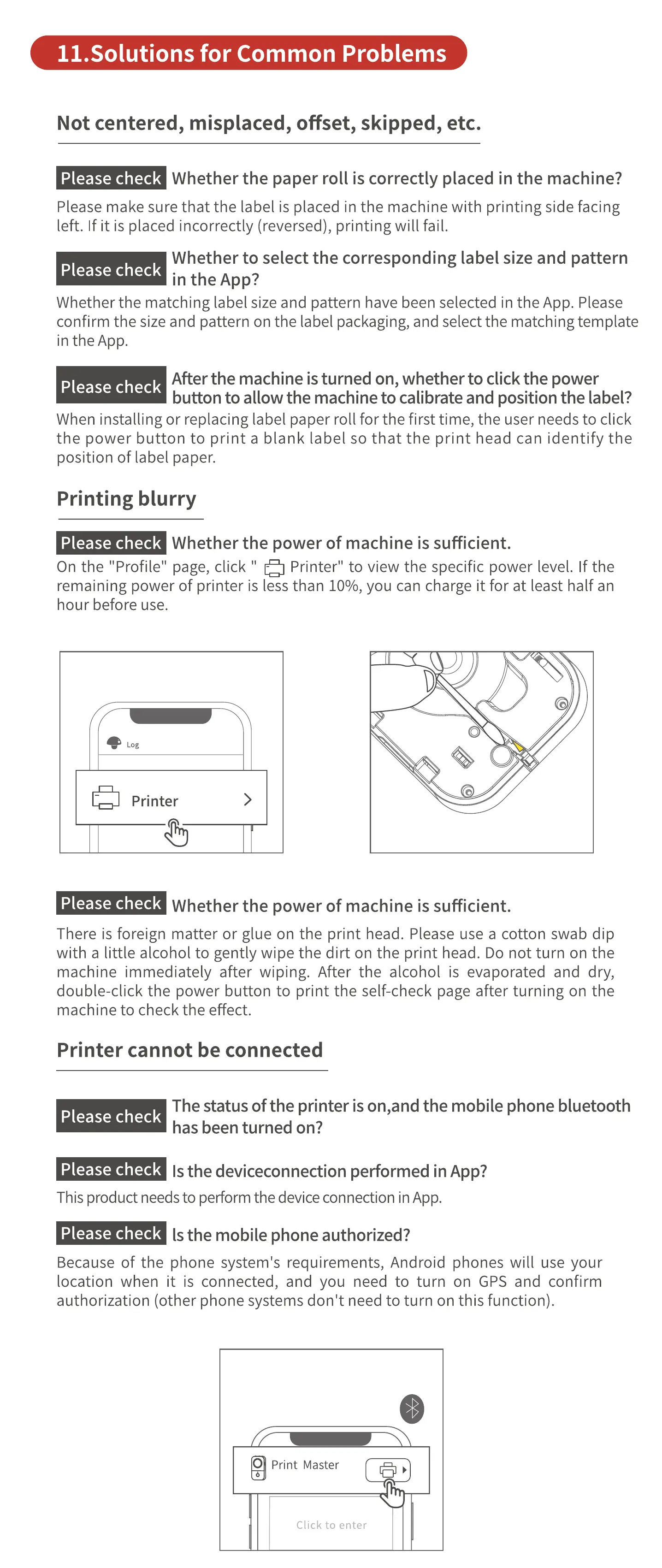 Whether the matching label size and pattern have been selected in the App. Please