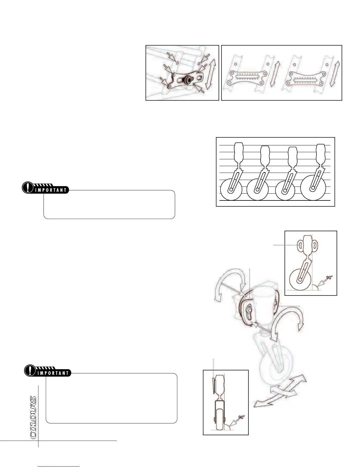 creased. The casters must be adjusted to 90˚ in both vertical plains.