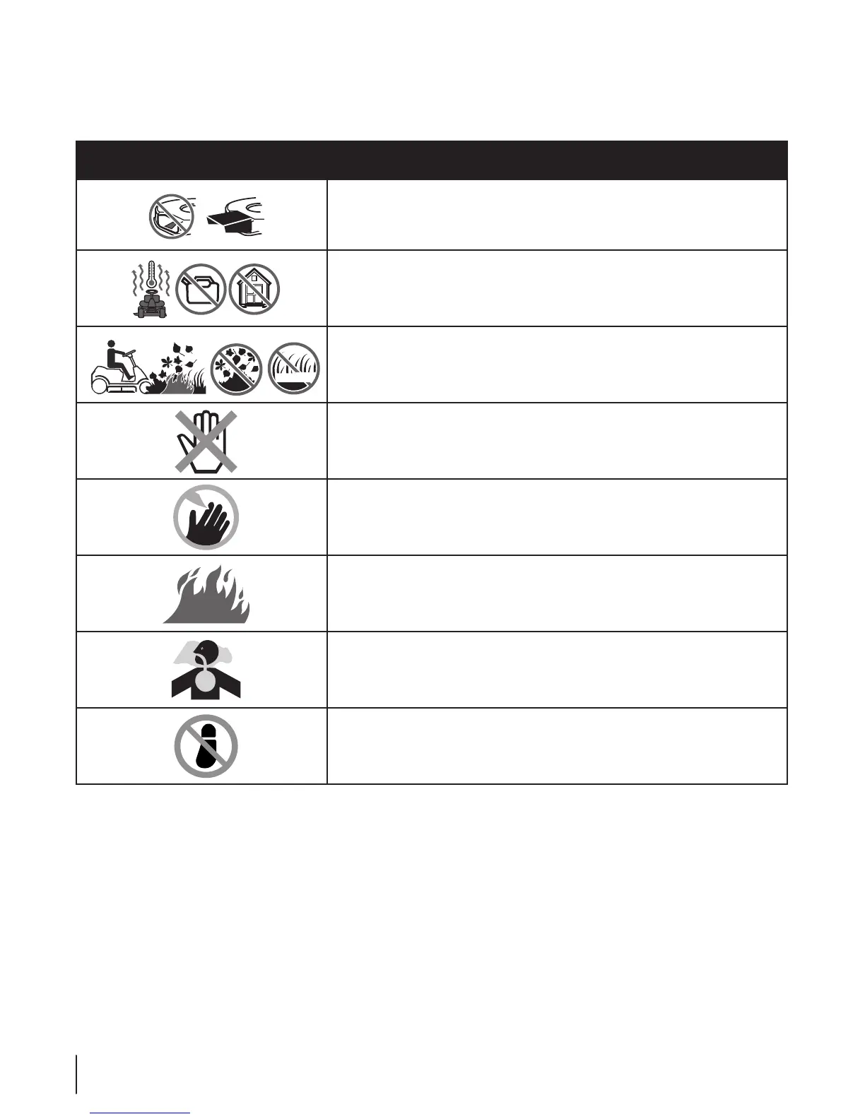 vegetation. Do not drive through piles of dry leaves or tall dry grass (Max. 10”). Keep