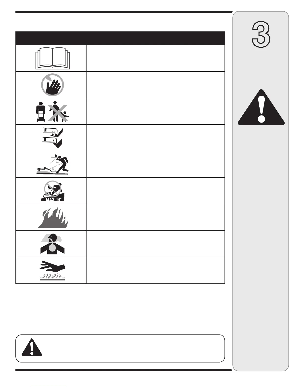 Use extra caution on slopes. Do not mow slopes greater than 15°.