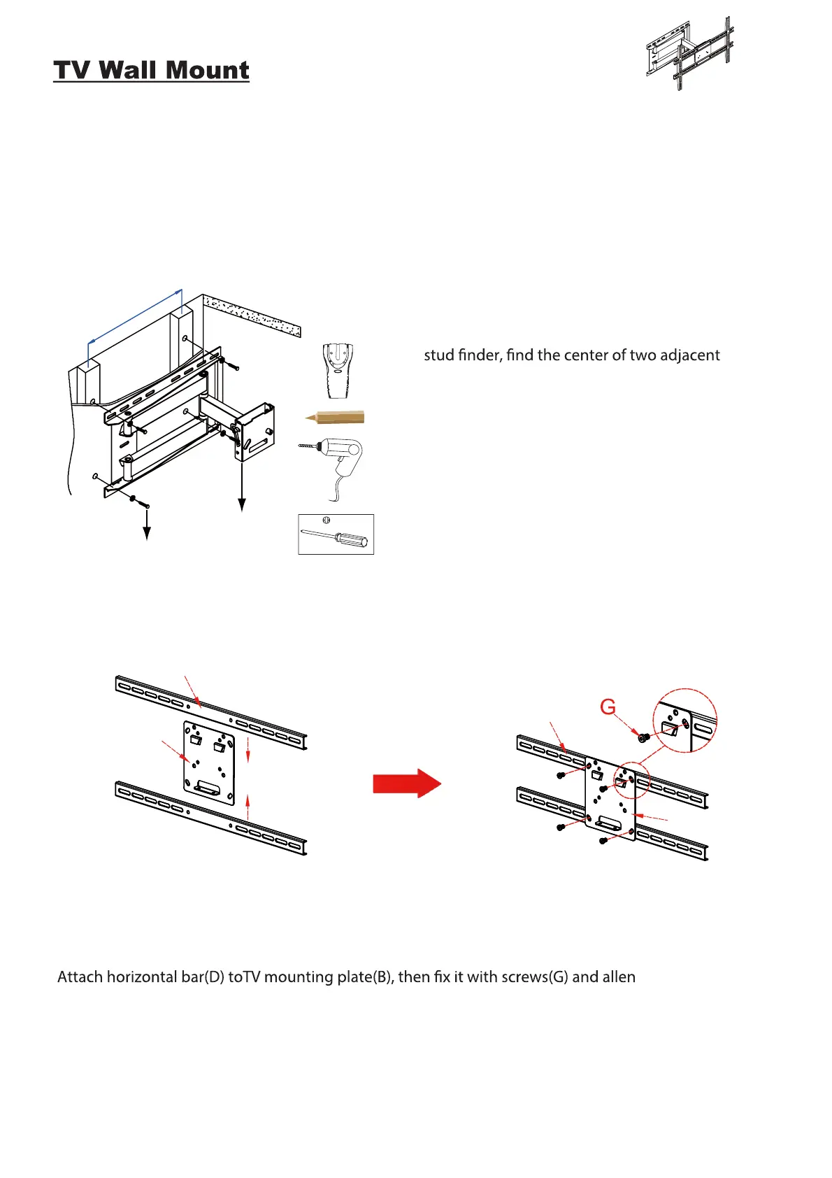 Attach wall bracket(A) to the wall with 4