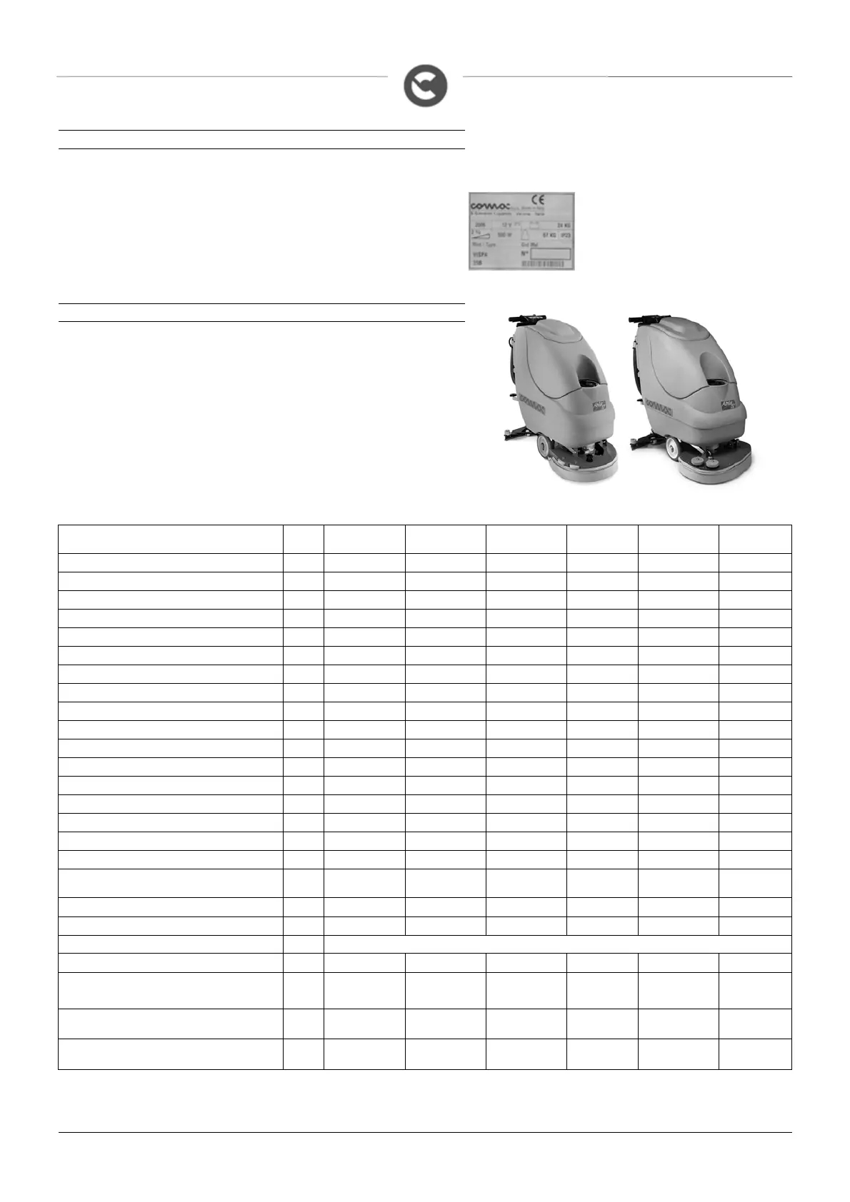 Pressure on the brushes kg max 20 max 20 max 20 max 22 max 20 max 22