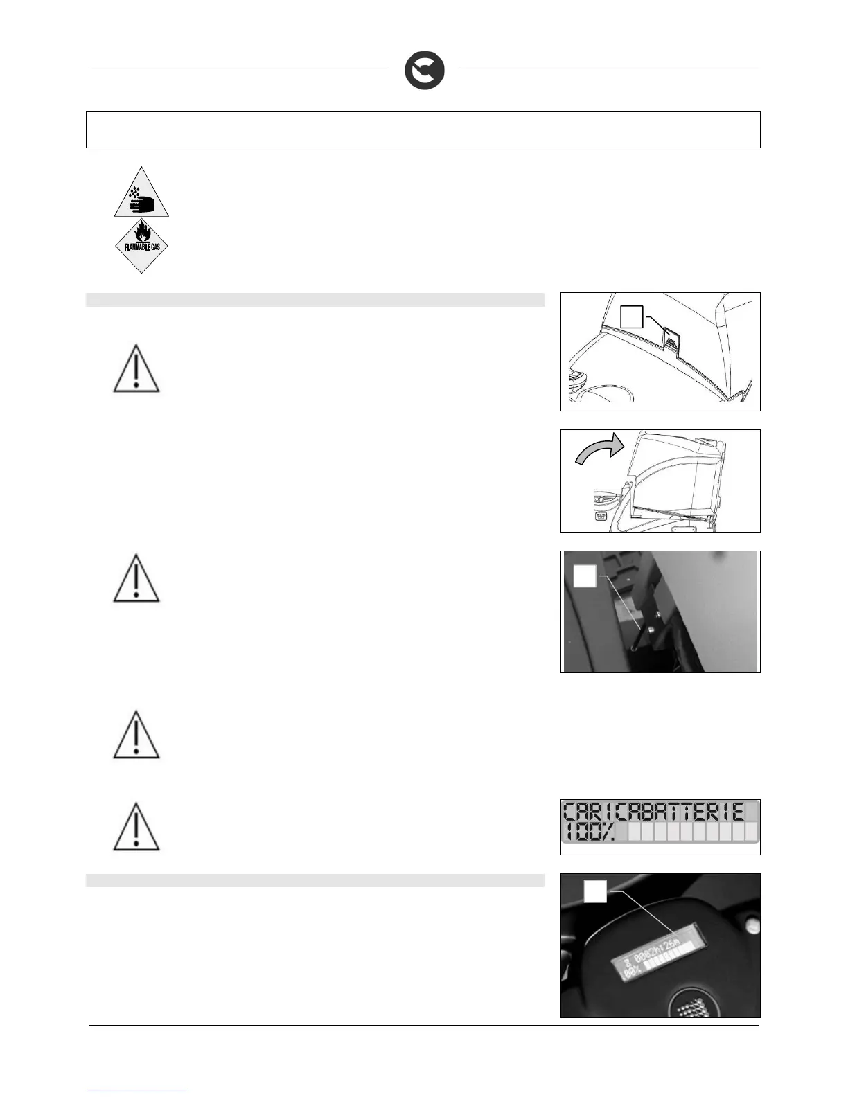 On the instrument panel of the machine there is a monitor (1) indicating (amongst other things) the battery