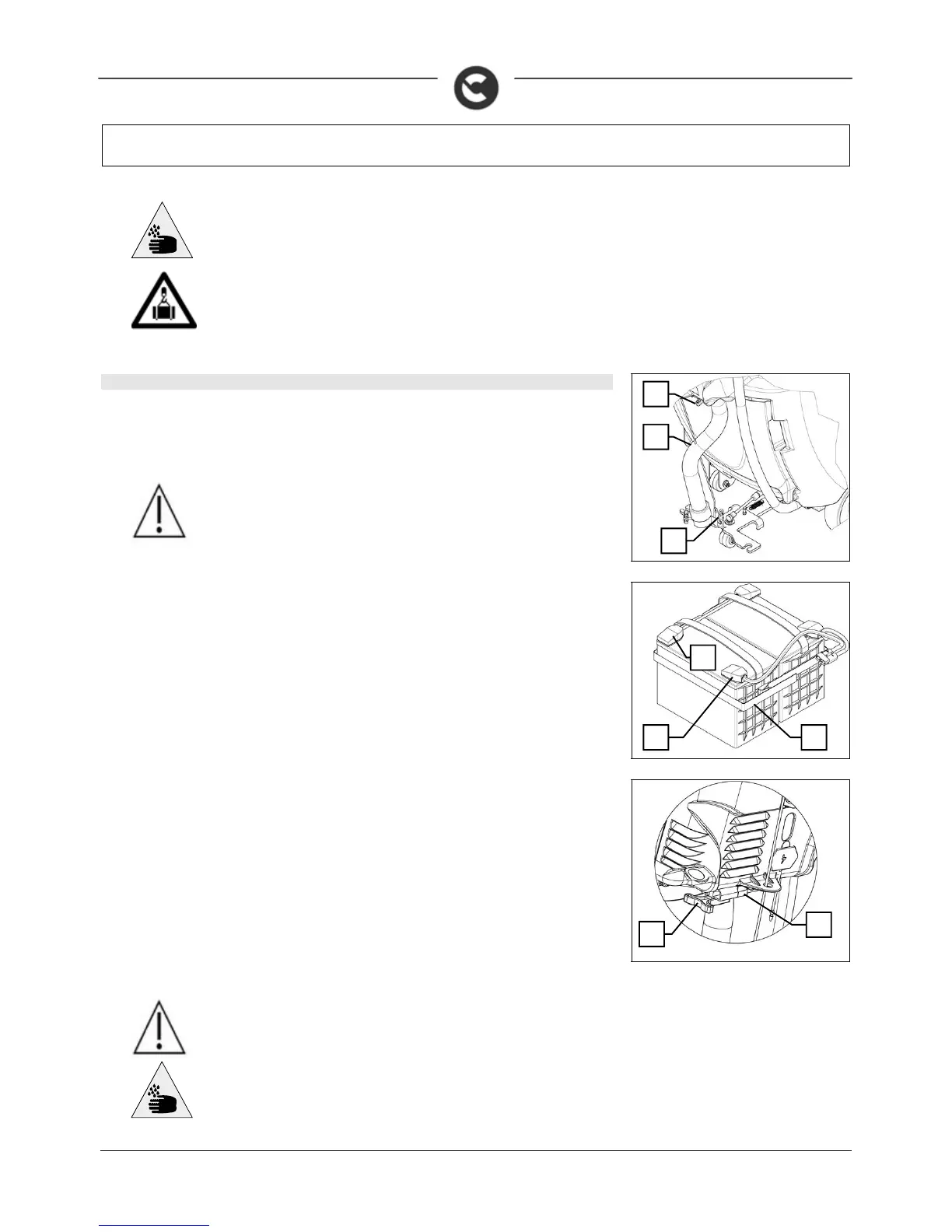8. Connect the battery connector cable (5) to the terminal poles “+” and “-“ to obtain a voltage of 24V on