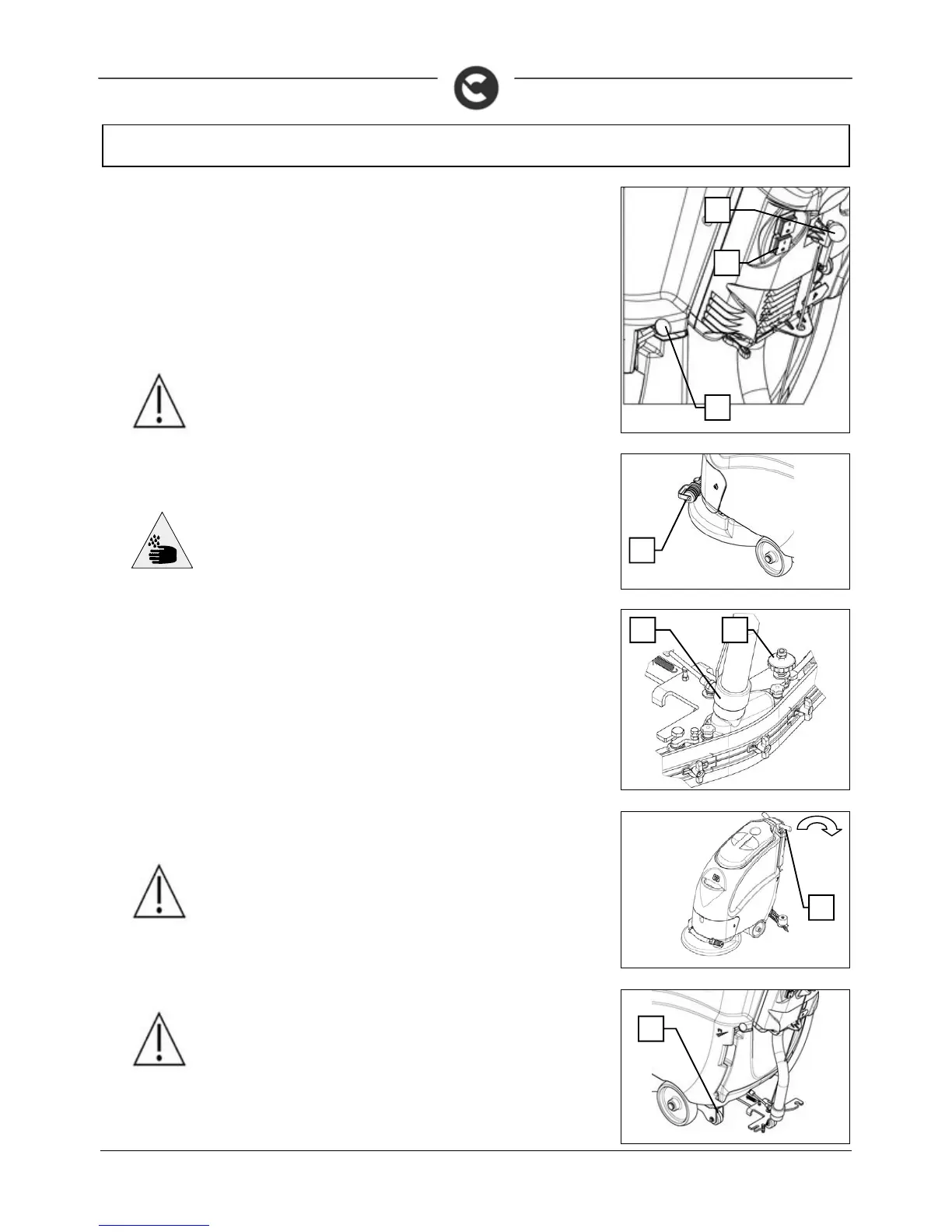 2. Lift the squeegee by inserting the squeegee cable tie-rod (2) in its seat on the back of the