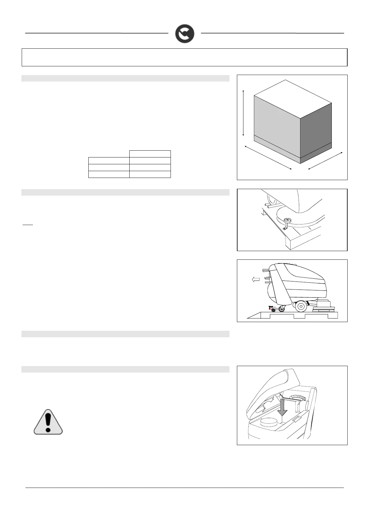 The machine is packed in a specific package provided on a pallet for the handling with fork trucks. The