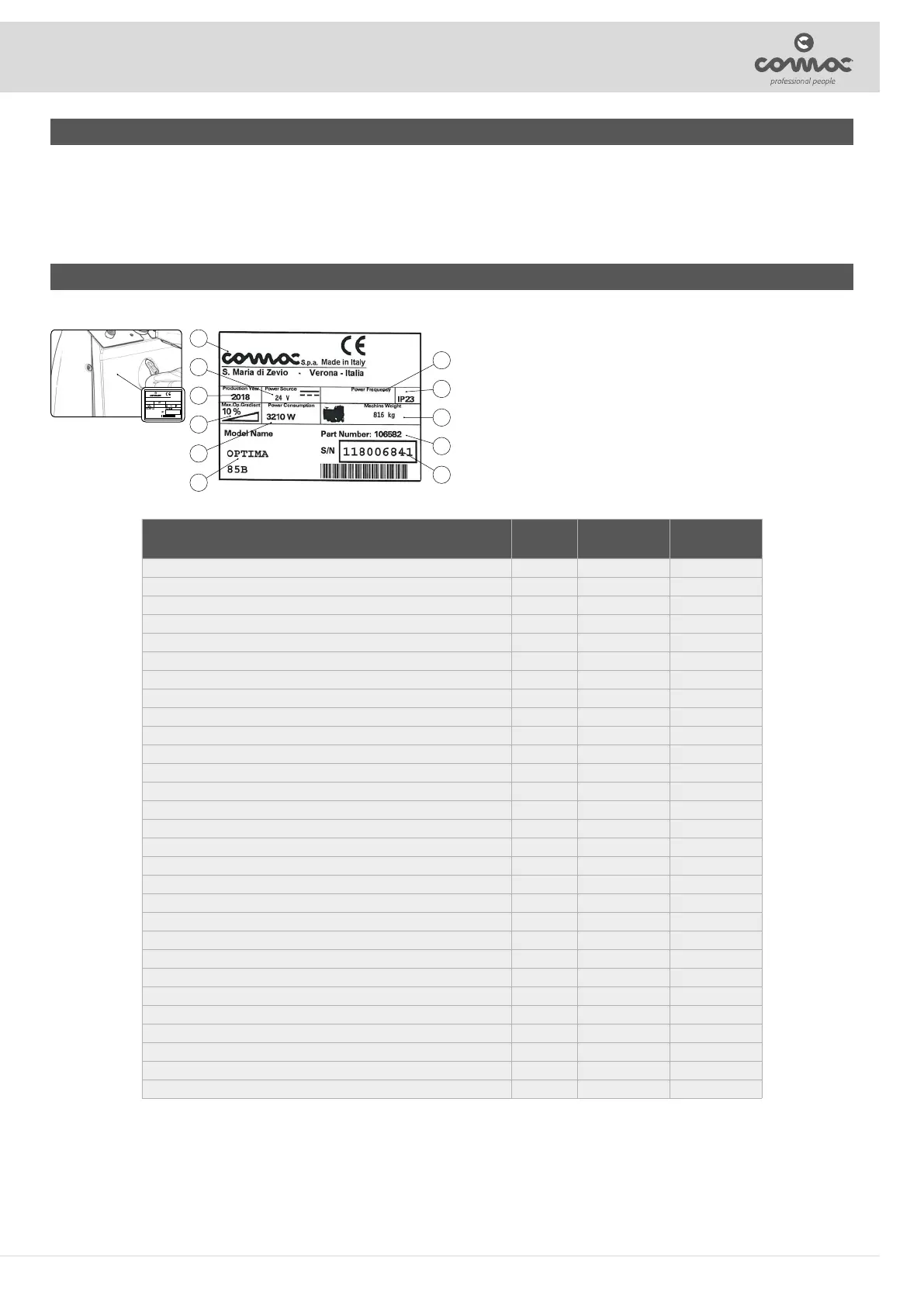 should always be provided together with any request for assistance or when purchasing spare parts. The serial number plate contains the following: