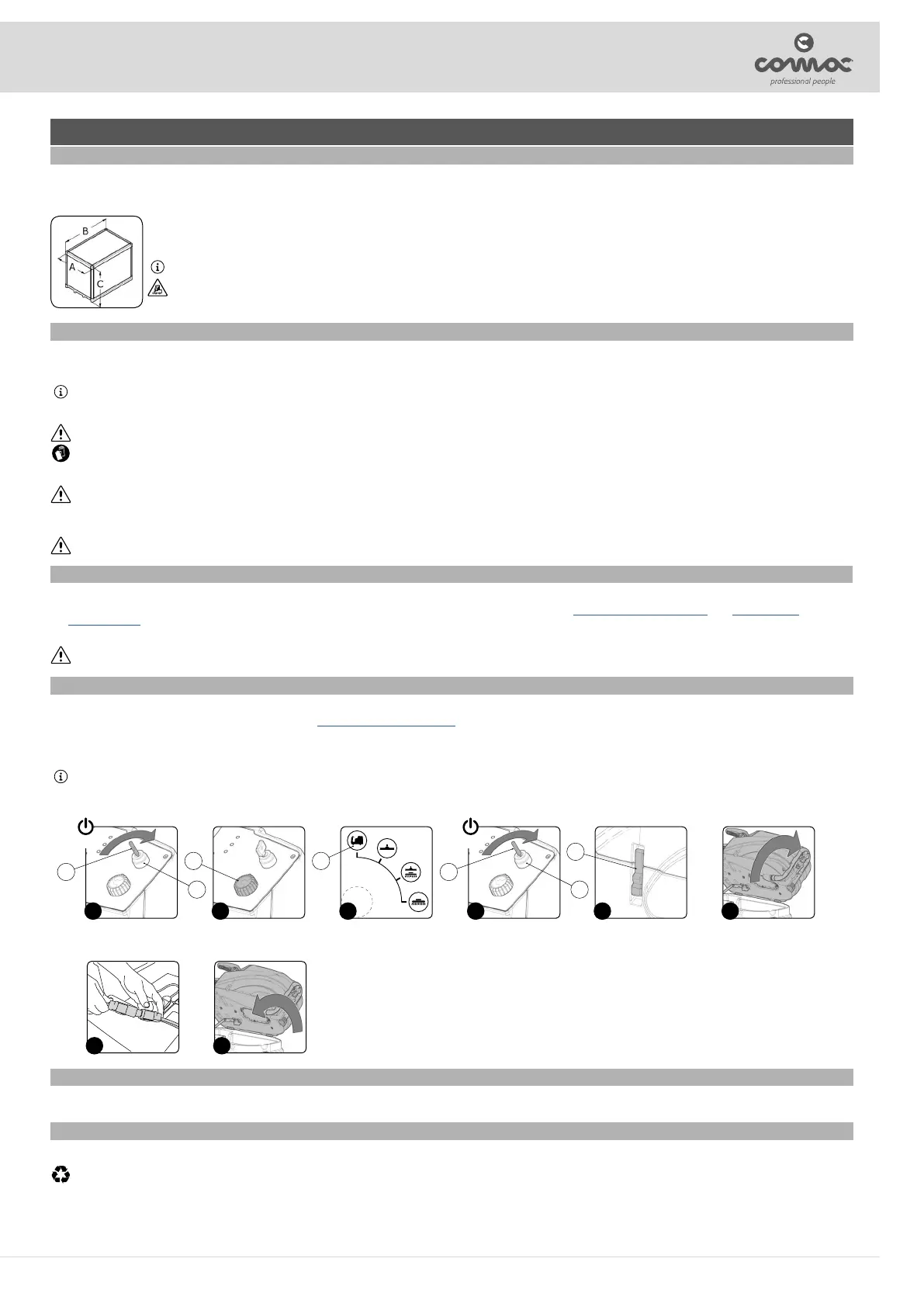 ATTENTION: move the packaged product with handling equipment that complies with legal requirements regarding size and mass of the packaging.
