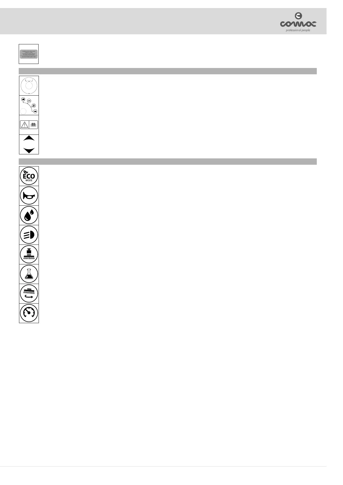 COMAC OPTIMA 100B - Symbols Present on the Command Panel; Symbols Present on the Control Panel