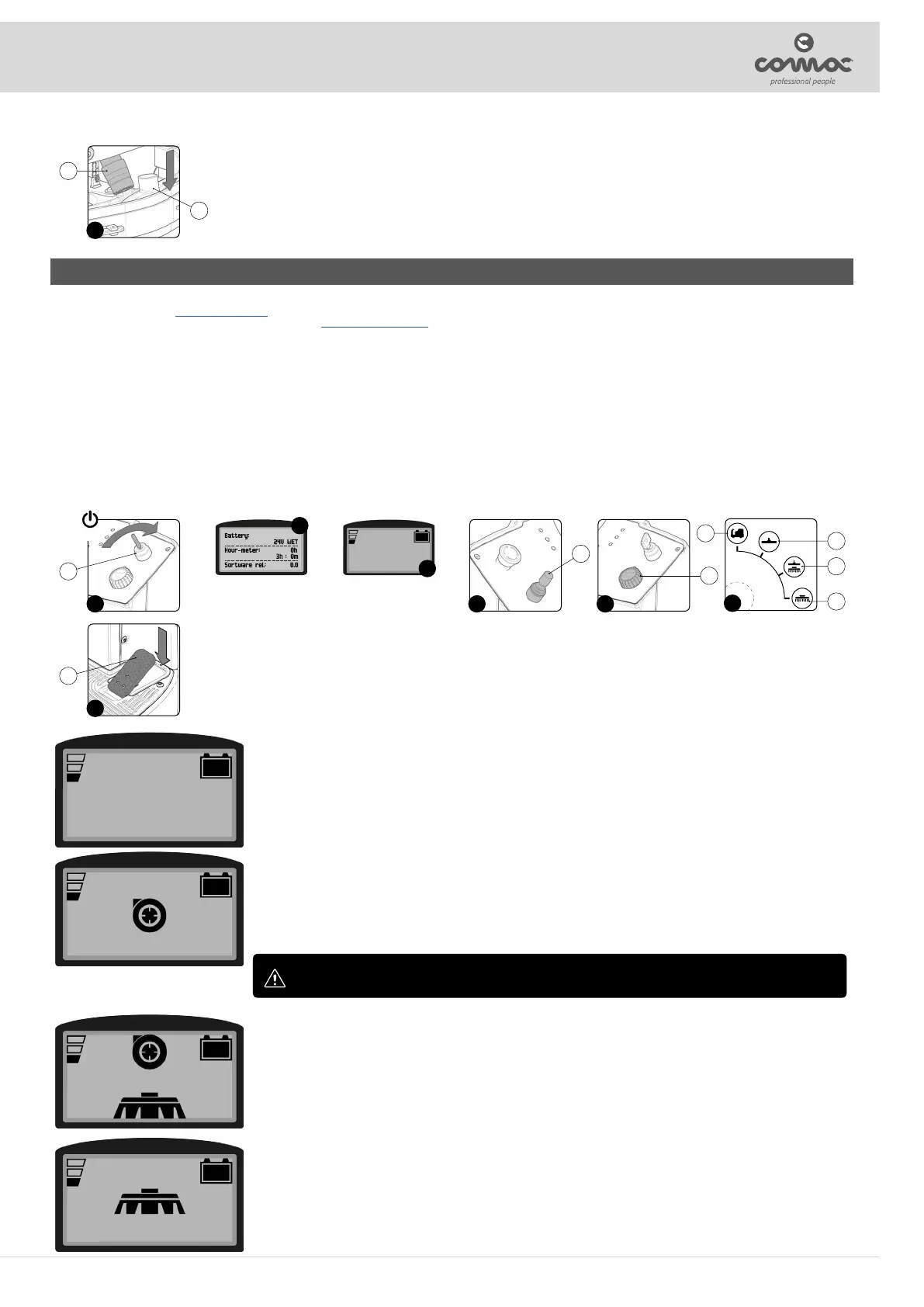 active are those of the traction hub motor and the brush head gearmotors. When the drive pedal is pressed, the brush head will move to the working position,