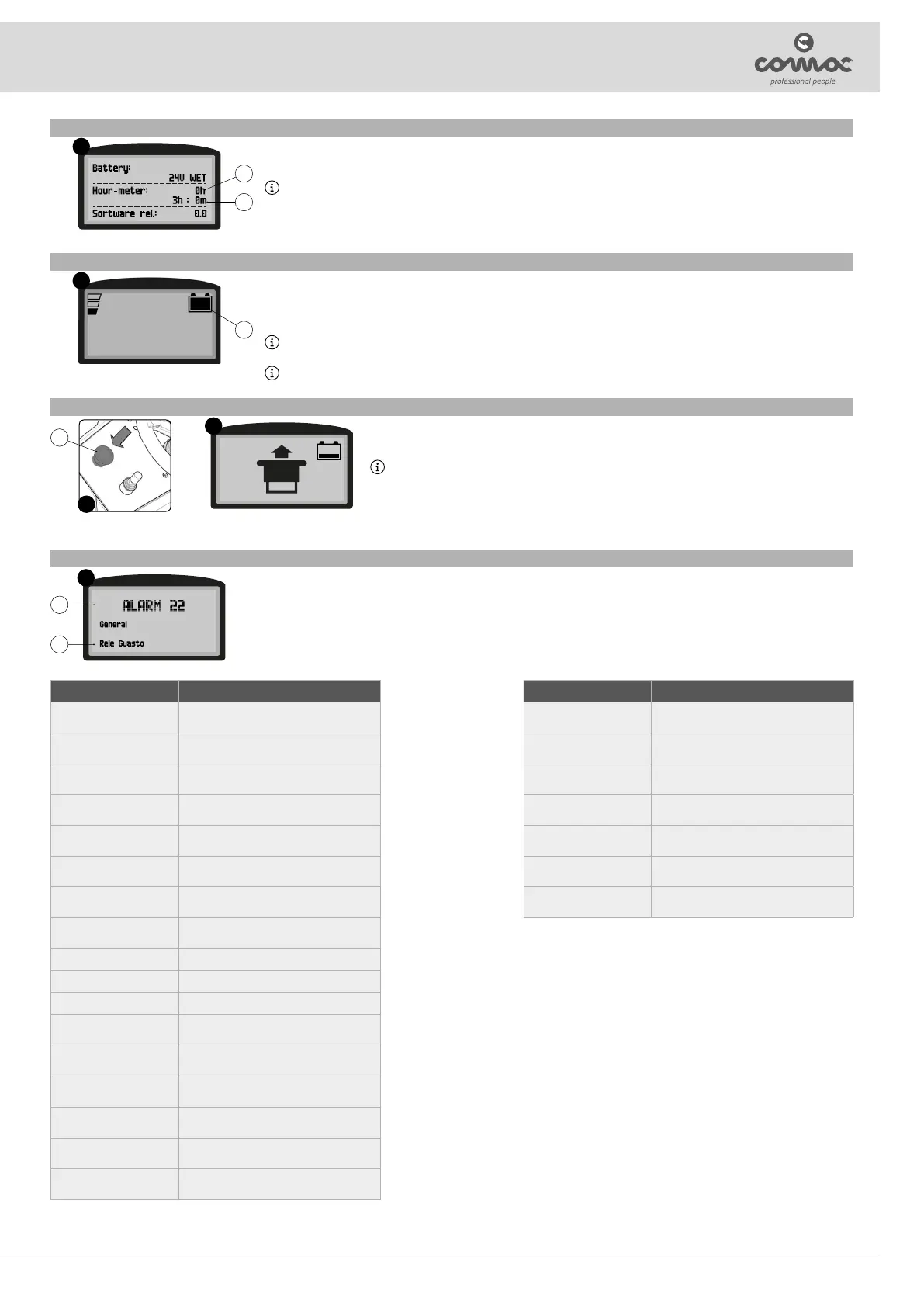 The display of the alarm consists of a rst ashing line relating to the code (16) and the source of the error (17) (Fig. 19), while in the second line displays a
