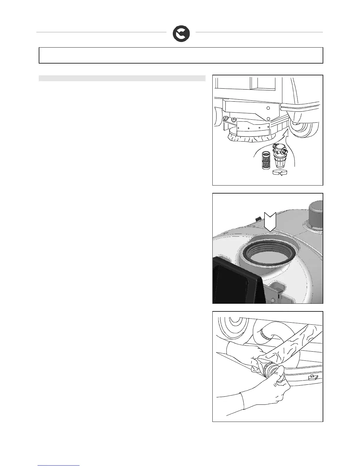 Note : The filter can be cleaned also if the water tank is full. To close the tap is