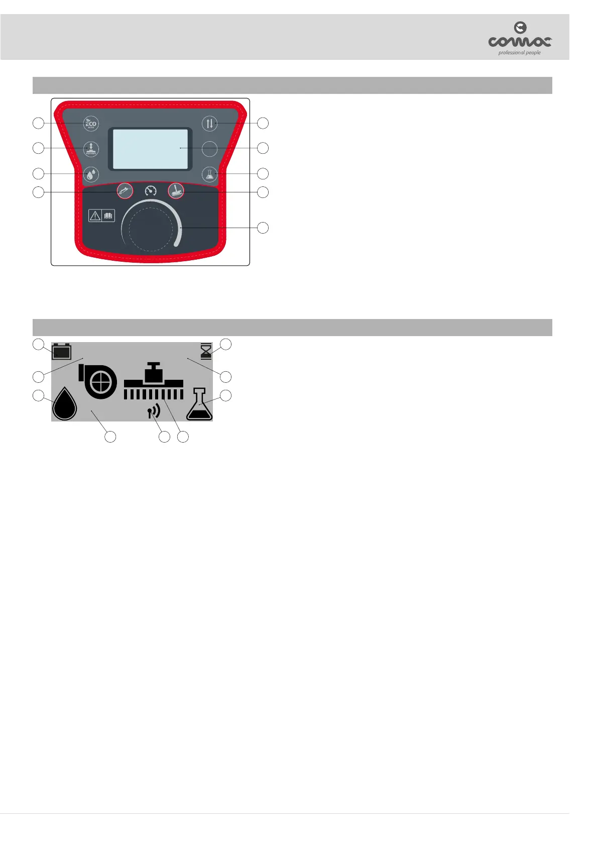 9. Graphic symbol that identies the percentage of charge of the batteries in the machine (see "BATTERY CHARGE LEVEL").