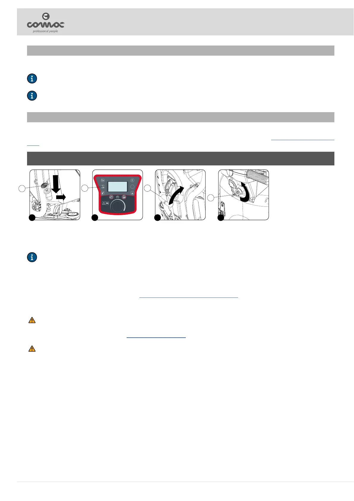 ATTENTION: Park the machine in an enclosed place, on a at surface; near the machine there must be no objects that could either