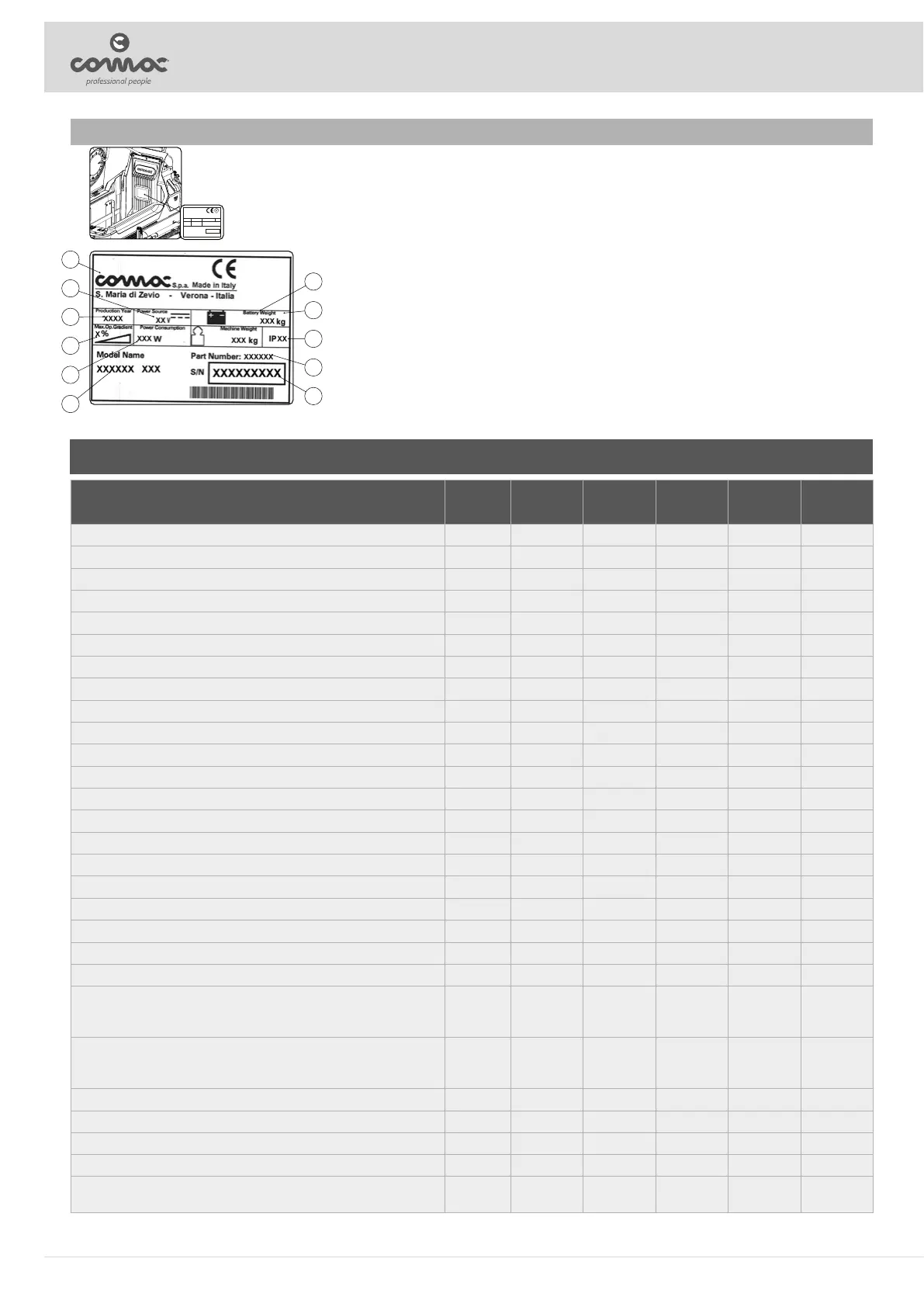 for assistance or when purchasing spare parts. The serial number plate contains the following: