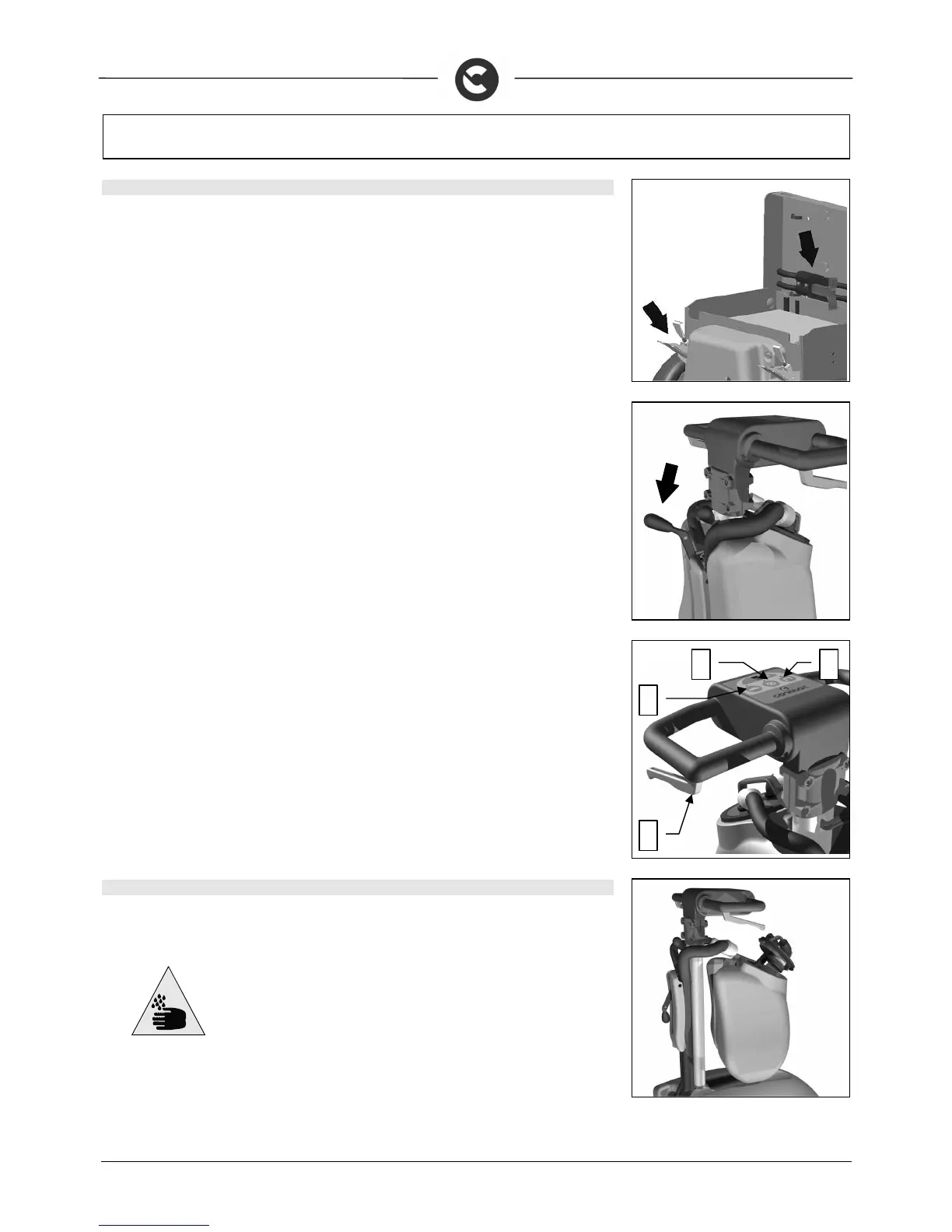 At this point - by using the operating lever that activates the brushes (4) - the machine can work