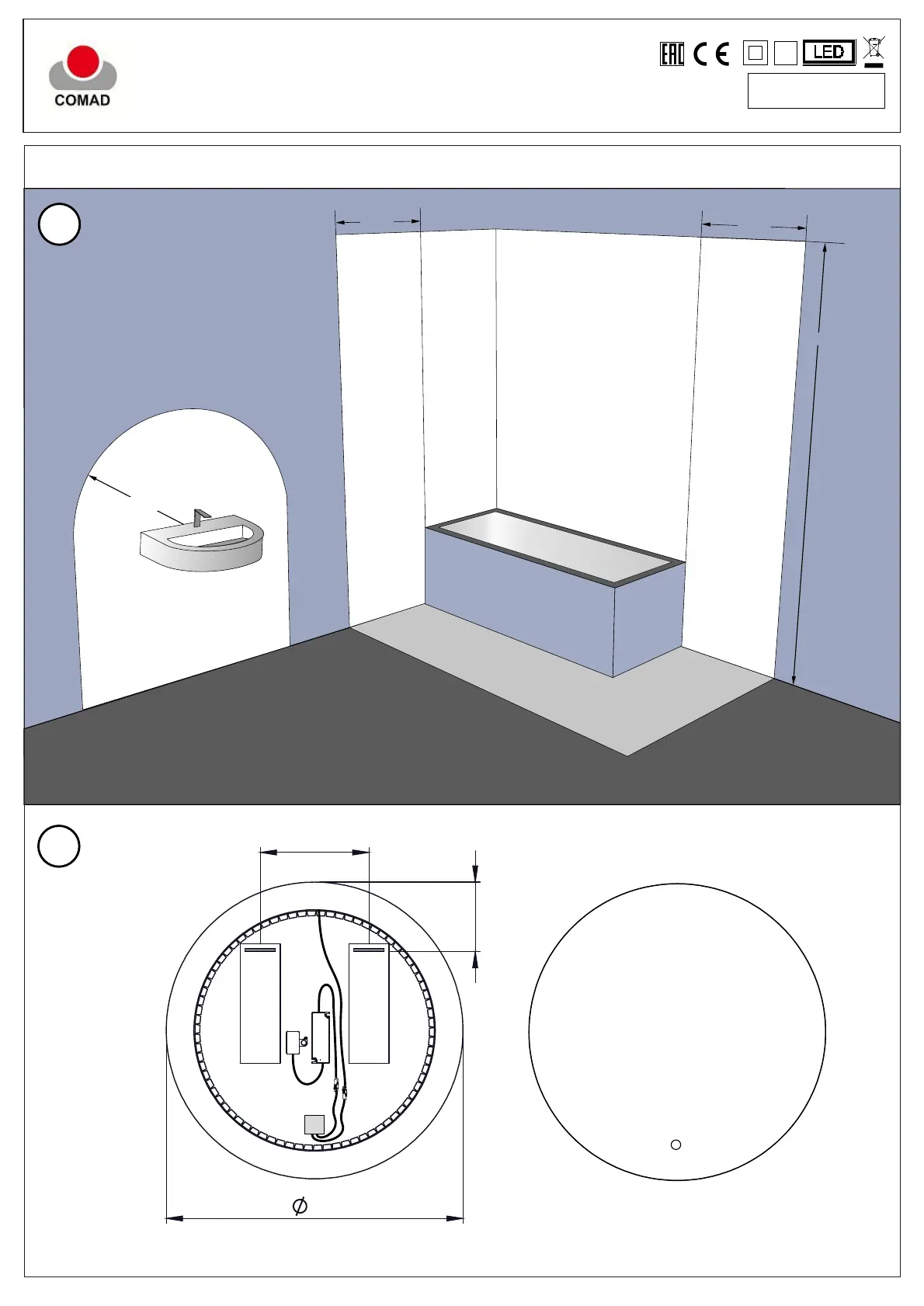 Montować tylko po za strefą 0,1 i 2 | Install only outside zone 0,1 and 2 | Nur außerhalb der Zone 0,1 und 2 . installieren
