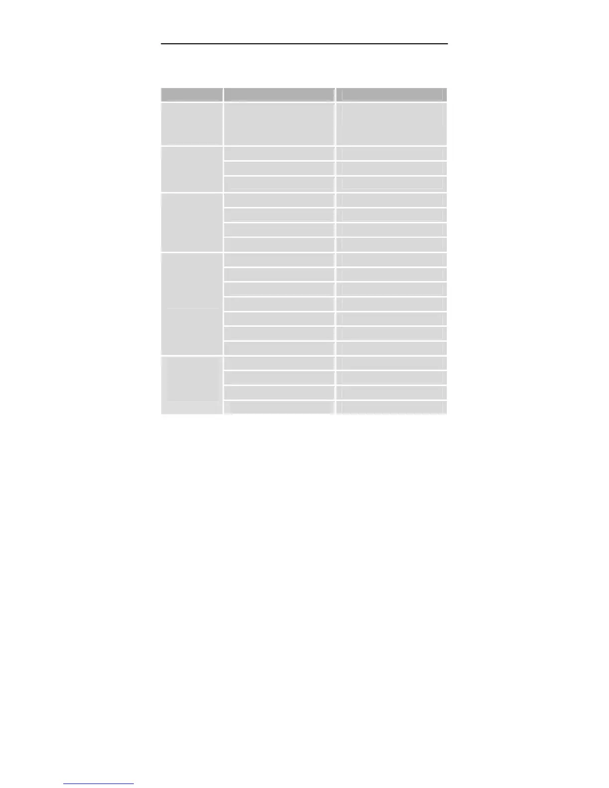 Main menu Sub-menu Description