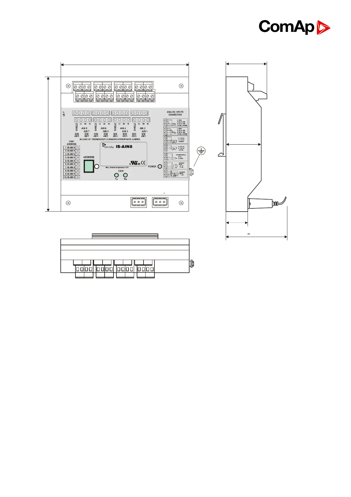 IS-AIN8 unit can be mounted on DIN rail (35mm).