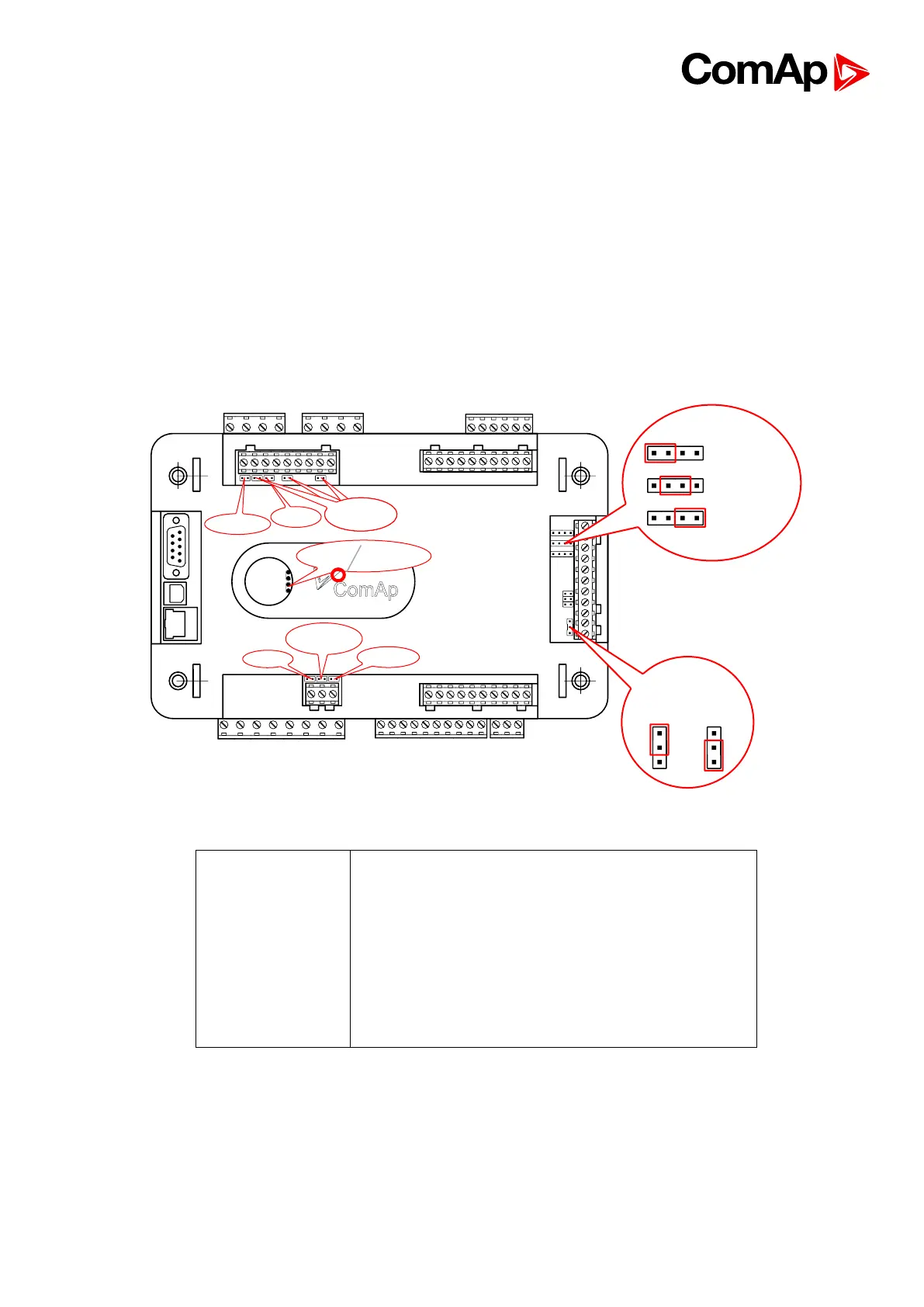 This schematic shows general jumper settings of Analog Inputs and Outputs for all the
