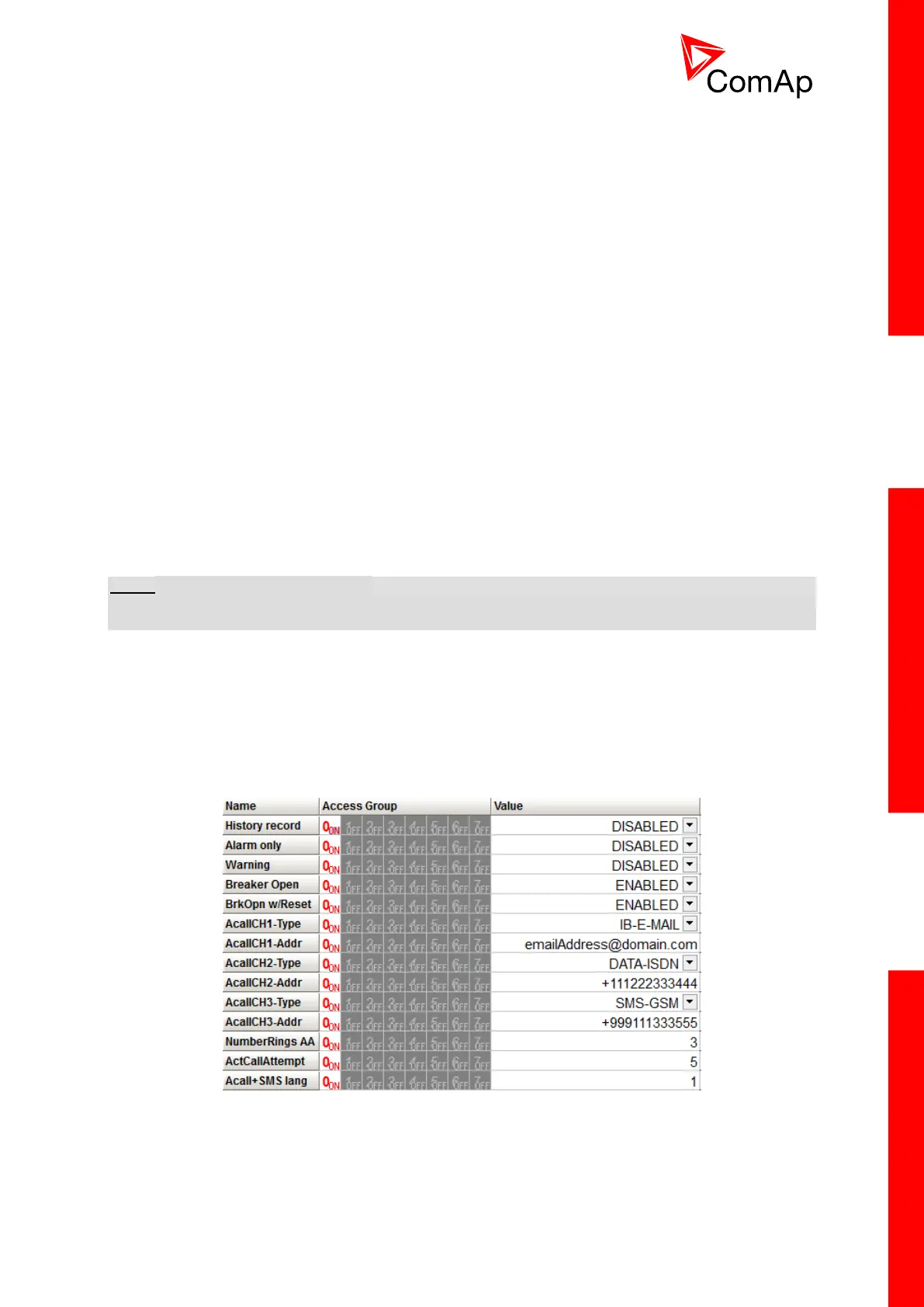 records (only date, time, reason) to the recipient's mailbox via the IB-COM module or IG-IB module.