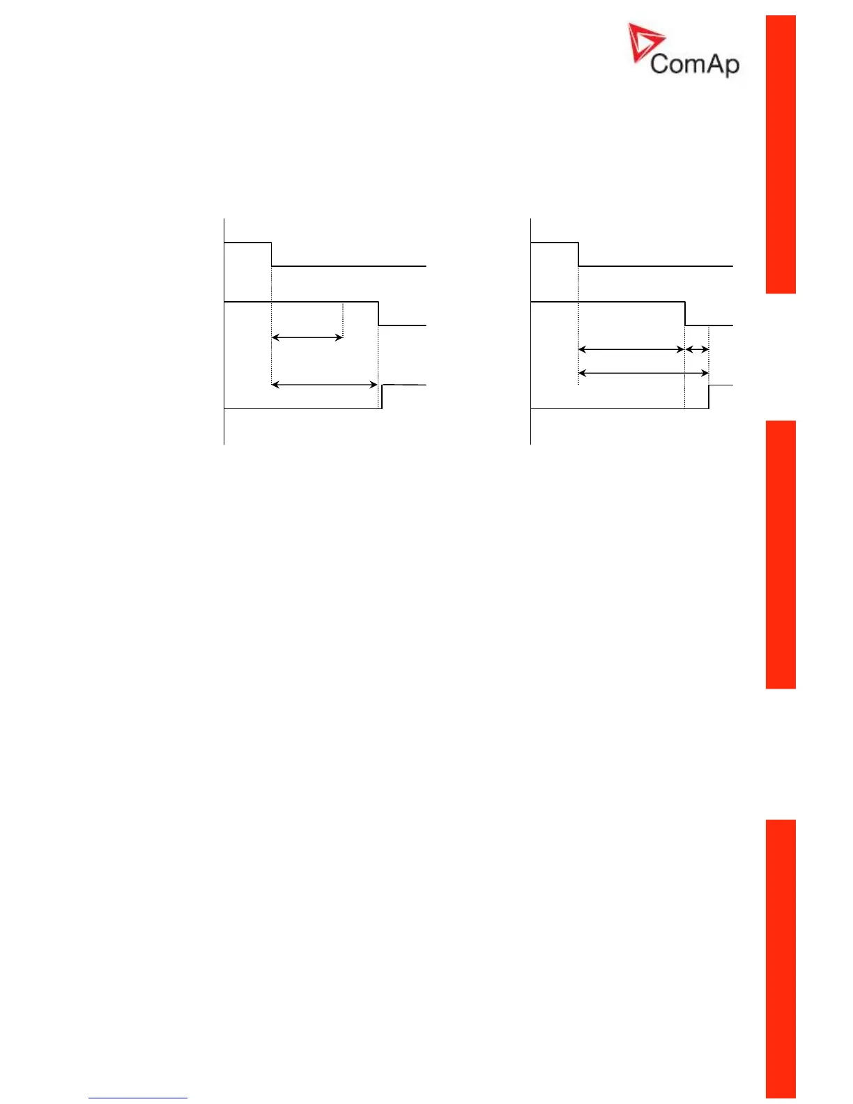 The time charts bellow show recommended setting of AMF Settings: Transfer Del setpoint.