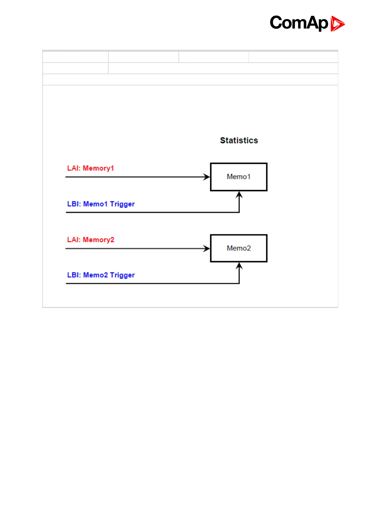 There are two Statistics registers Memo1 and Memo2. Those statistic values are based on Logical Analog