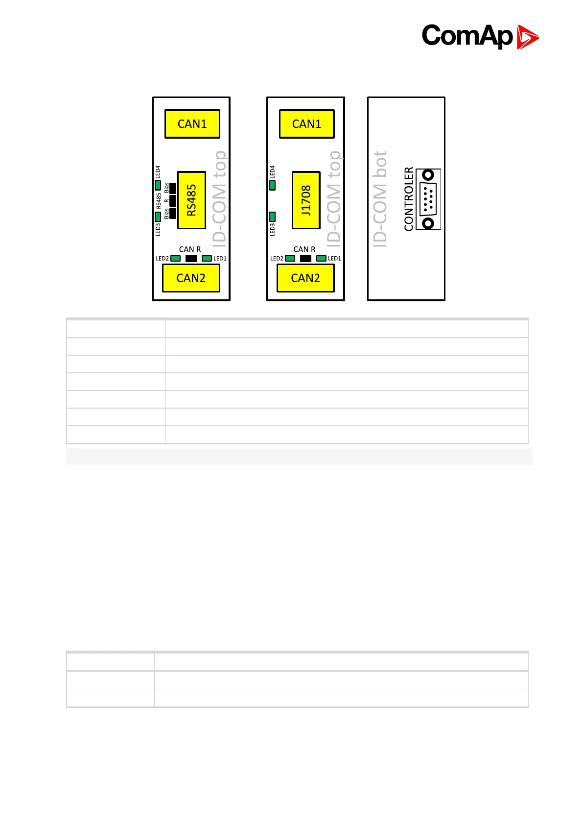 LED3, LED4 Communication on RS485 or J1708 (Rx, Tx)