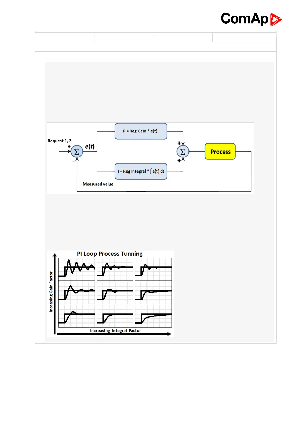 Proportional-Integral regulation with setpoints Reg Gain (page 131) and Reg Integral for each part and