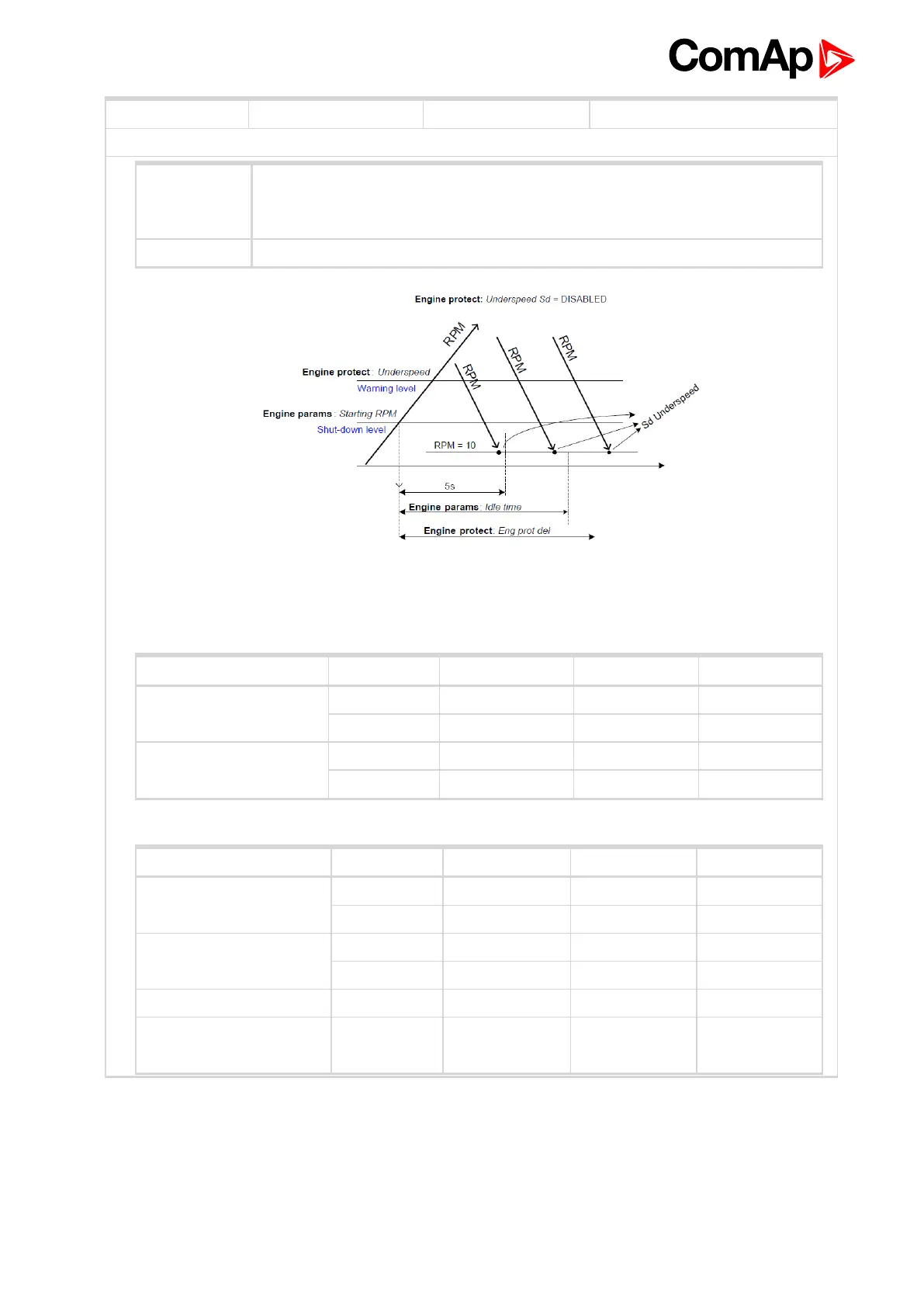 Underspeed (page 140) and SdUnderspeed protection in case the engine RPM
