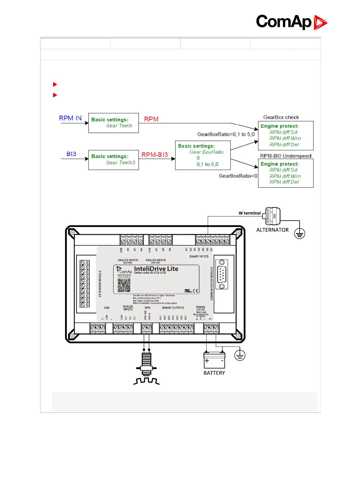 Note: The RPM-BI3 measuring and corresponding protections are switched off when GearTeethBI3