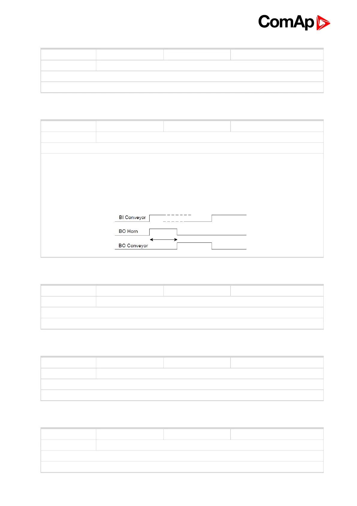The second rising edge of CONVEYOR (PAGE 194) opens the BO Conveyor. BO Conveyor is deactivated in