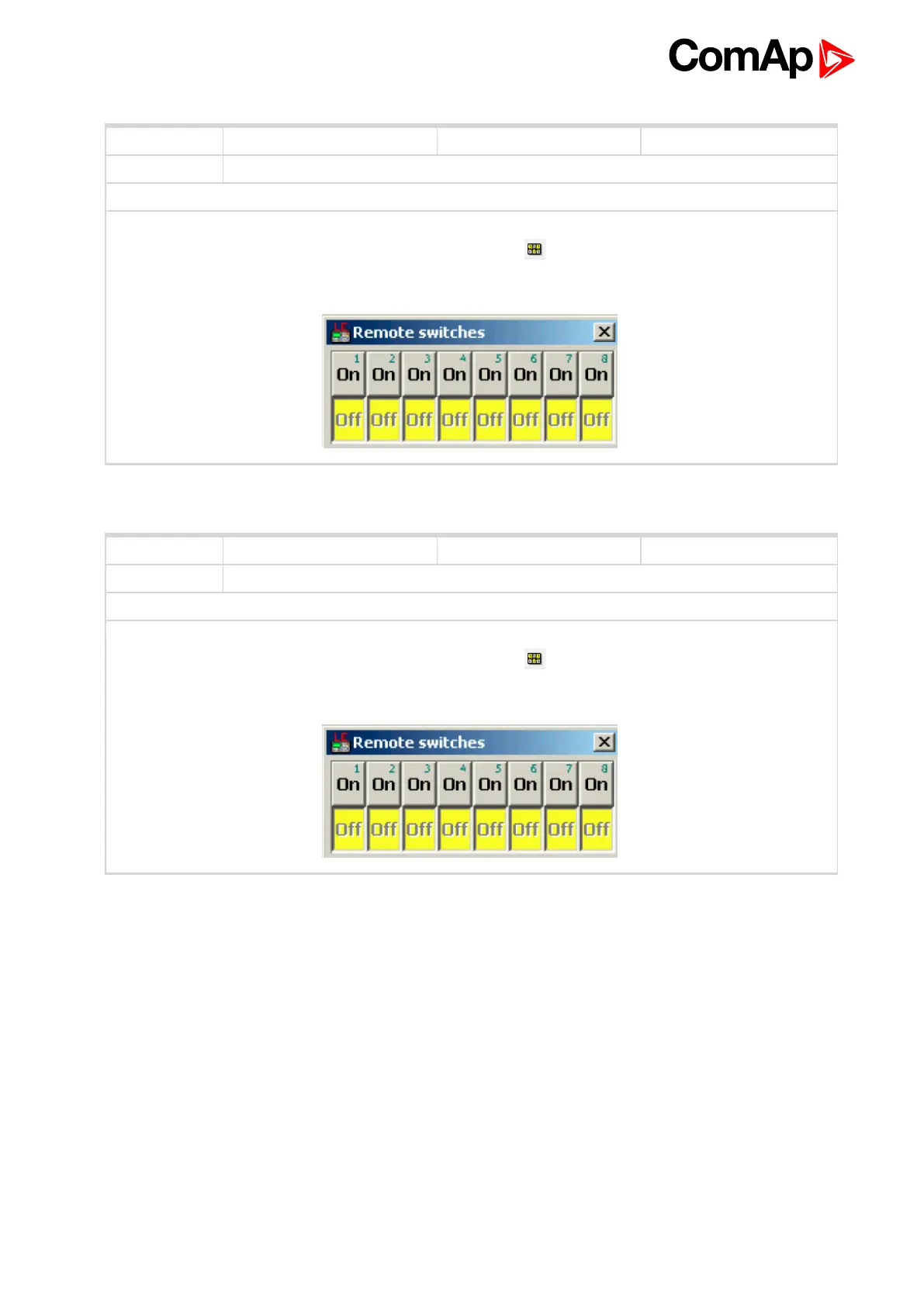 Allows configure Remote control switches to physical binary outputs. These switches are accessible from